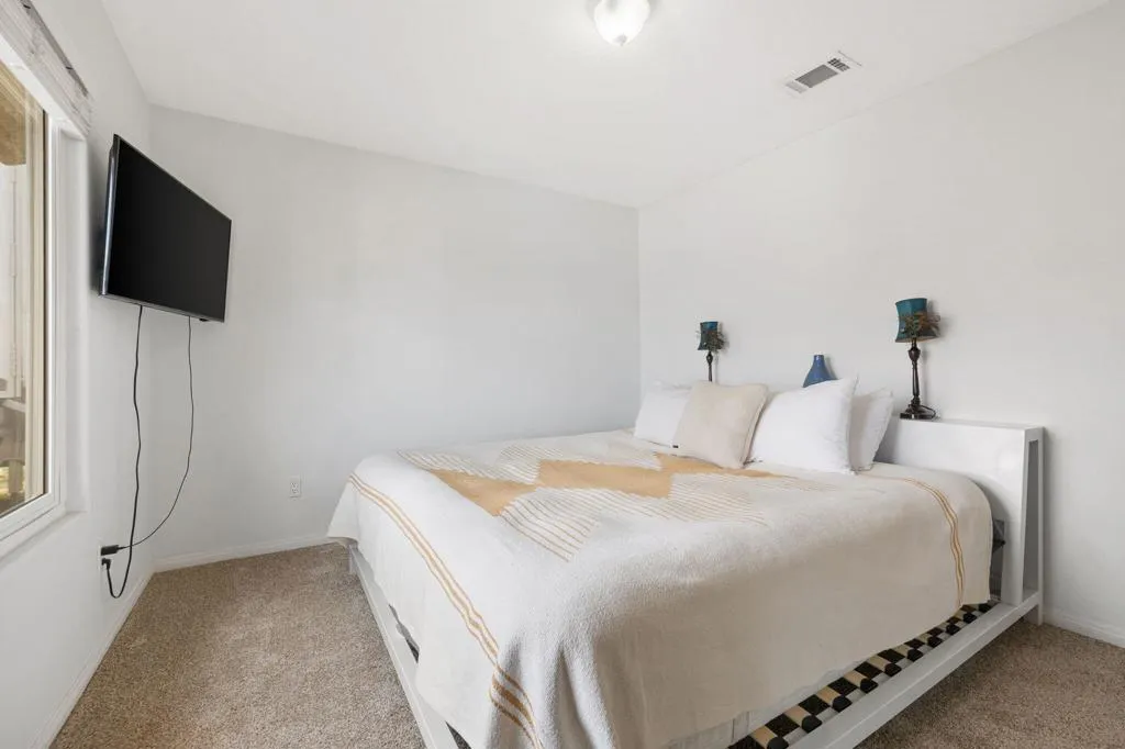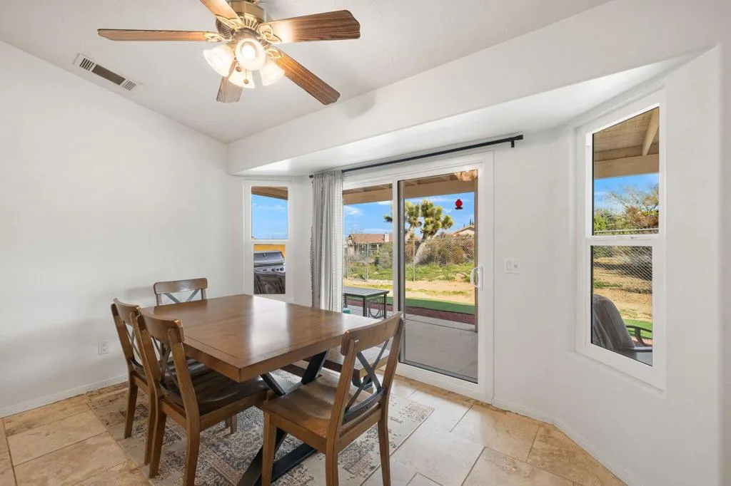Nestled high in the desirable southern Juniper Terrace area , this immaculate four-bedroom, two-bath home is a true desert retreat. With completely paid off Solar and the summer heat on it's way, wouldn't you enjoy electric bills on average of less than $10/month? Recently enhanced with all-new windows, a beautifully updated kitchen and bath fixtures, and top-of-the-line appliances, this home is move-in ready. The inviting living room with a cozy fireplace sets the tone for relaxation, while a flexible front space can serve as a formal dining area, home office, or a tranquil reading nook. 3 of the 4 Bedrooms have walk in closets, Primary suite with large walk in closet, dual sink vanities, separate soaking tub with jets and shower.Outdoors, enjoy a newly landscaped yard complete with a hot tub, RV parking and hookups, and an electric car charge located in the oversized double car garage. The property's nearly half-acre lot offers a fenced area with a separate wildlife retreat space, perfect for stargazing or unwinding after a day on the nearby trails.Whether you're looking for a full-time residence, a weekend getaway, or a prime short-term rental opportunity, 8419 Elk Drive delivers the best of Yucca Valley living--with modern comforts and the beauty of the desert at your doorstep.