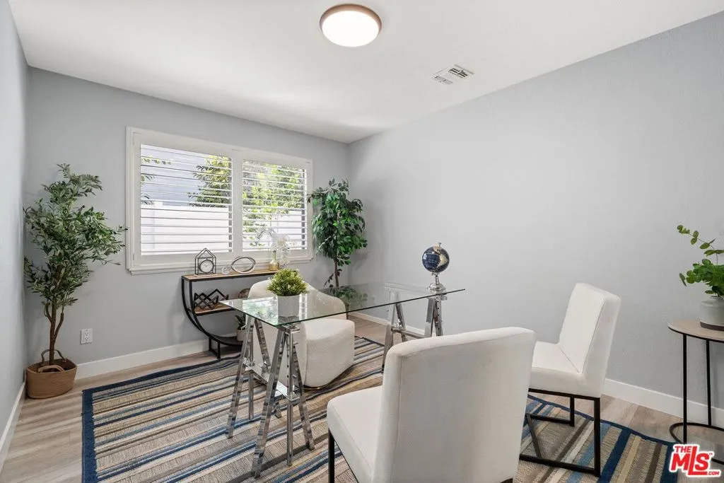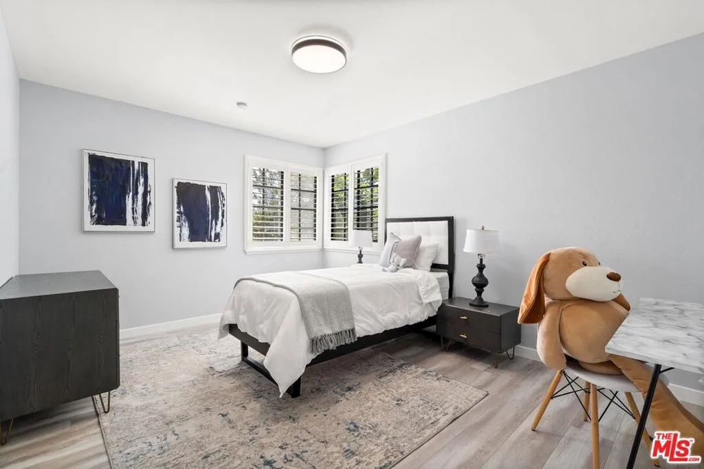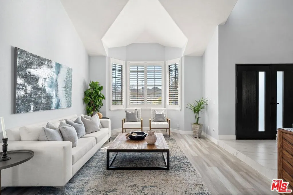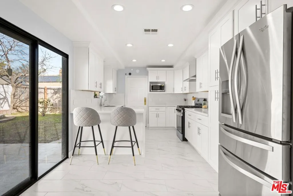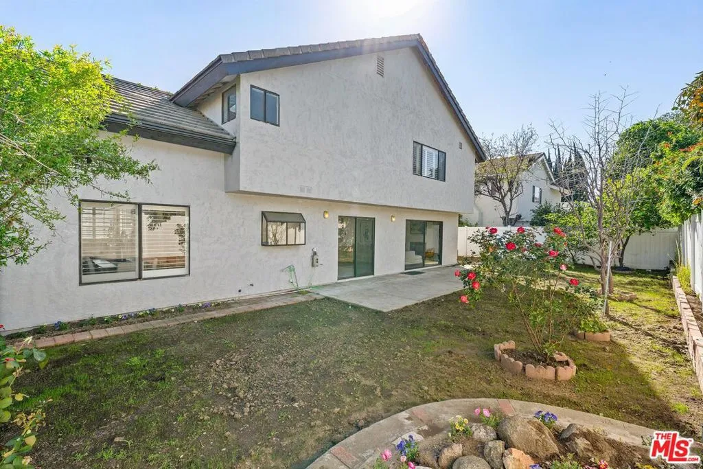 This charming two-story home situated in the heart of Northridge has been thoughtfully remodeled with modern conveniences while retaining its inviting charm. Spanning 4BD/3BA, the home features soaring ceilings, wood-style flooring, and a generous backyard with room for a pool. The spacious living room opens to a formal dining area, creating an ideal setting for gathering with family and friends. The adjacent kitchen is bright and functional, offering stainless steel appliances, sleek countertops, bar seating, and direct access to the backyard. The kitchen flows into an additional living area with sliding glass doors and a charming fireplace, creating a comfortable space for everyday living and entertaining. A bedroom near the entry, well suited as a guest room or home office, sits across from a full bathroom, completing the main level. Upstairs, three additional bedrooms await, including the expansive primary suite with a walk-in closet, additional sliding-door closet space, and an ensuite bath featuring dual vanities, a soaking tub, and a step-in shower. The secondary bedrooms share a full bathroom with dual vanities and a shower-tub combination. Outside, the spacious backyard offers lush landscaping for added privacy and room for a pool. Additional highlights include a gated driveway and a two-car garage with direct access. Conveniently located near the Northridge Fashion Center, California State University, Northridge, dining, public transportation, and major commuter routes, this beautifully updated home offers an ideal combination of space, functionality, and location.