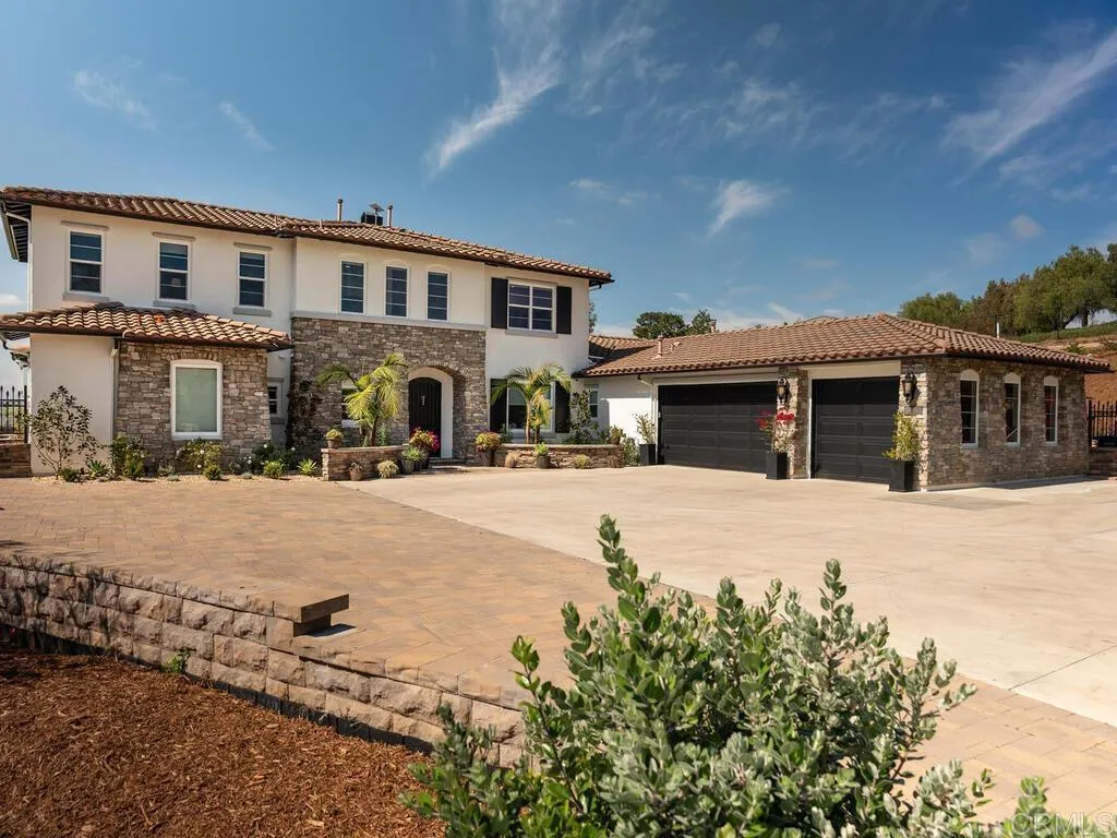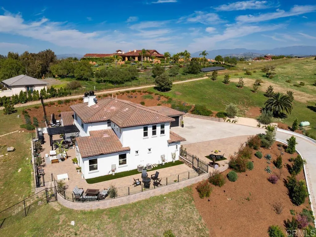 Located within the gated community of Aguacate Ranch in Bonsall, this beautifully upgraded estate blends modern classic architecture with the tranquility and scenic beauty of North San Diego County’s rolling countryside. Set on 2.16 acres, the property offers sweeping southwest-facing views and exceptional privacy in a peaceful rural setting. Built in 2005, the residence spans approximately 4,843 square feet and features three bedrooms, four and one-half bathrooms, and a three-car garage, thoughtfully designed for both comfortable living and elegant entertaining. The home showcases spacious living areas filled with natural light and refined architectural details. At the heart of the home is a contemporary chef’s kitchen appointed with premium Thermador, Sub-Zero, and Bosch appliances, a generous workspace, and seamless flow into the surrounding living and dining areas. The primary suite is conveniently located on the main level, offering a private retreat complete with a spa-inspired bathroom featuring marble finishes, a walk-in shower, and elegant detailing. Also located on the main floor is a dedicated office, providing an ideal space for work or study. Upstairs, the home offers two guest bedrooms, an open loft area, and a large bonus room currently used as a media room, providing flexible living space that can easily adapt to a variety of lifestyle needs. The 2.16-acre property offers usable outdoor space with potential for gardens, outdoor living enhancements, or even a private vineyard. The home is located within the newly recognized San Luis Rey Valley American Viticultural Area (AVA), where the region’s favorable microclimate and southwest orientation support the continued development of vineyards and boutique wineries. Residents of Aguacate Ranch enjoy a gated community setting while remaining just minutes from the charming villages of Bonsall and Fallbrook, and within convenient reach of coastal communities, golf courses, dining, and regional amenities.