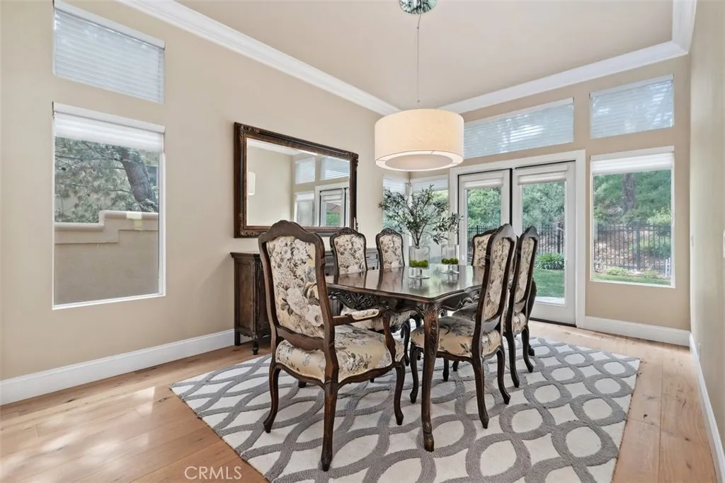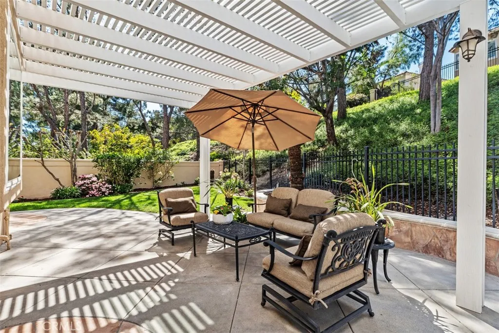 Welcome to this beautifully upgraded home in the highly sought-after Califia neighborhood of Mission Viejo. Ideally located on a quiet single-loaded view street, this impressive 5-bedroom residence blends timeless elegance with modern upgrades and thoughtful design. Step through the entry into a dramatic foyer with soaring cathedral ceilings and an abundance of natural light. Spacious living areas are highlighted by numerous windows and quality upgrades throughout, including Provenza engineered hardwood flooring, upgraded baseboards, and crown molding. The formal dining room is perfect for entertaining and features French doors that open to the patio and lush backyard, creating seamless indoor-outdoor living and an ideal setting for al fresco dining. The updated kitchen is the heart of the home, showcasing a large center island with granite countertops, upgraded cabinetry, recessed lighting, and stainless steel appliances including a Thermador 6-burner cooktop and double ovens. The kitchen flows effortlessly into the family room, complete with custom cabinetry, recessed lighting, and plenty of space for gatherings. The main level also offers a versatile bedroom and ensuite full bathroom, ideal for guests or multi-generational living, in addition to a powder room adjacent to the large living room. Upstairs, the spacious primary suite features a cozy fireplace and bonus sitting area that can be used as a retreat, office, or reading space. The beautifully updated primary bathroom includes travertine flooring, upgraded cabinetry, granite countertops, a soaking tub, separate walk-in shower, and a generous walk-in closet. Three additional upstairs bedrooms are generously sized and share an updated bathroom with tile flooring, granite countertops, and a tub/shower combination. Recent upgrades include a newer roof, dual HVAC systems, and full home re-piping for added peace of mind. Enjoy exclusive Lake Mission Viejo membership with access to two sandy beaches, boating, fishing, summer concerts, and year-round community events. The home is conveniently located near award-winning schools, including highly regarded Bathgate Elementary just down the street. With a convenient 3 car garage with EV charger, low taxes, no Mello-Roos, and easy access to freeways, shopping, dining, and miles of hiking and biking trails, this exceptional home offers the very best of Mission Viejo living.