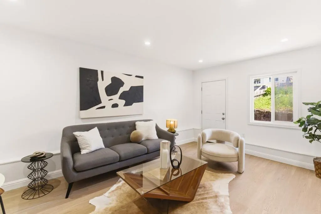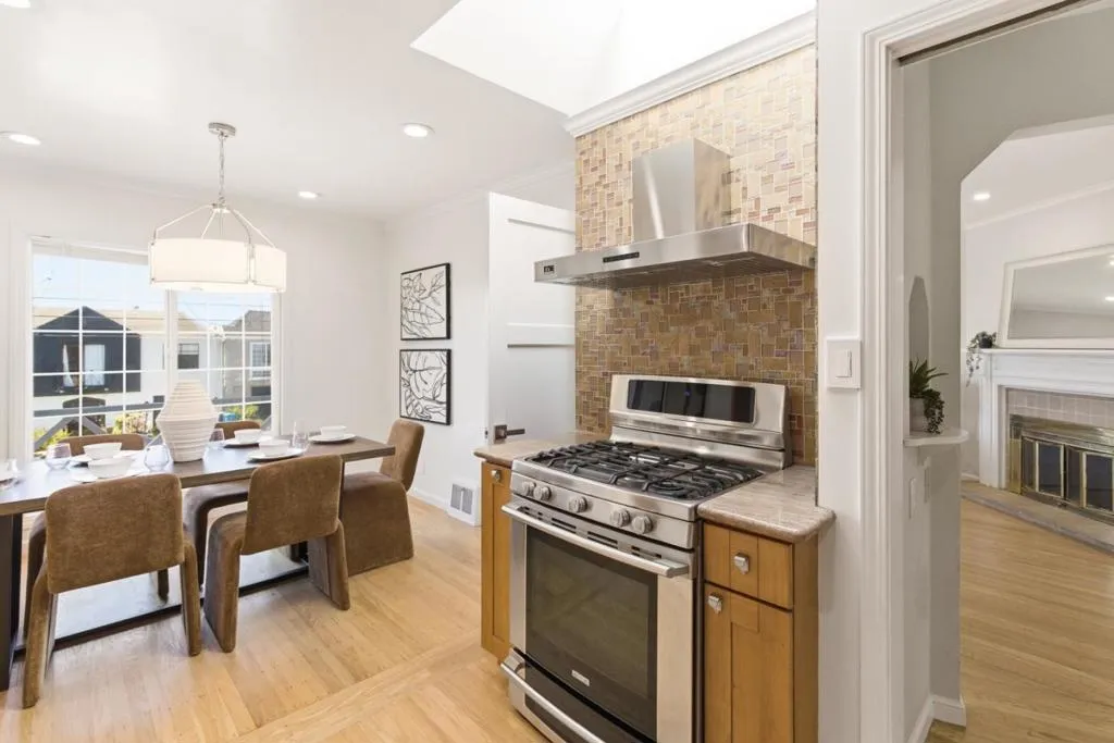Welcome to 2126 43rd Avenue, a charming 2-bd, 1-ba home just minutes from Ocean Beach in San Francisco. The spacious living room ft. a cozy fireplace accented by new recessed lighting and hardwood floors throughout, creating a warm, inviting space for family & entertaining. The eat-in kitchen has been thoughtfully updated over the years w/ modern cabinets, granite countertops, tile backsplash, brand-new exhaust hood, refrigerator, and pull-down faucet, offering both style & functionality. The fully remodeled bathroom showcases designer tile floors & shower walls, sliding glass door, vanity w/ sink, new mirror & light, and built-in linen shelves. Both bedrooms are generously sized w/ ample closet space, while a finished bonus room plus additional full bath w/ stall shower provides versatile space for a home office, guest area, or recreation. Additional highlights include new light fixtures, brand-new water heater, 1-car garage, and a large landscaped lot with fresh mulch, perfect for outdoor living or gardening. Ideally situated near Ocean Beach and Great Highway, with a short drive to Skyline connecting to major routes, this home blends modern updates, flexible living space, and a coveted coastal location.