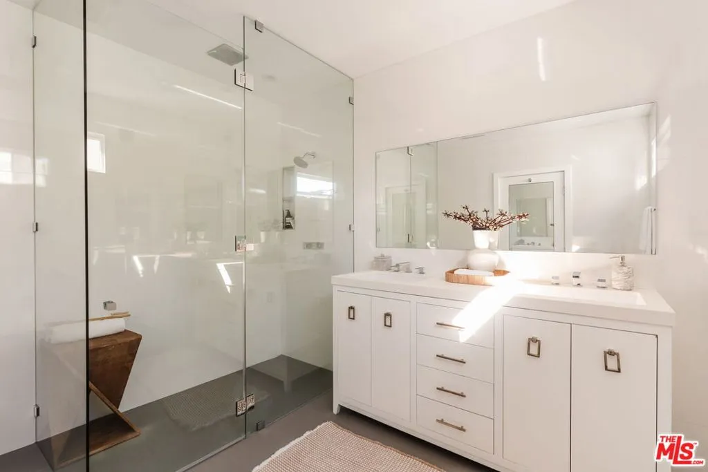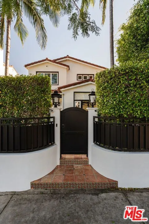 Set along a quiet, tree-lined street in a sought-after pocket of West Hollywood, this fully gated Spanish Revival has been thoughtfully reimagined through a comprehensive renovation completed between 2020 and 2024. A newly added second level and meticulous modernization of the main residence, guest house, and surrounding grounds bring contemporary ease to the home's enduring architectural character. A hedged front garden creates a graceful approach, opening to interiors defined by warm wood floors, generous natural light, and a calm, cohesive palette. The living spaces unfold with quiet refinement -- from the inviting living room to a sunlit dining area and a beautifully appointed kitchen designed for both everyday living and effortless entertaining. Caesarstone surfaces, Sub-Zero and Wolf appliances, and abundant pantry storage anchor the space with understated sophistication. Advanced home tech is seamlessly integrated throughout, including Sonos surround sound, Lutron lighting, smart climate control, dual tankless water heaters, automated pedestrian and driveway gates, and a security system with perimeter cameras. The main residence offers three en-suite bedrooms, including a serene primary suite on the main level. Here, sliding doors open directly to the garden, while a custom walk-in closet and spa-inspired bath -- featuring a glass-enclosed rain shower and dual floating vanity -- create a tranquil retreat. Designed with Southern California living in mind, the backyard unfolds as a series of intimate outdoor moments. Two custom pergolas frame areas for dining and lounging, while a turf lawn and tall privacy fencing create a secluded setting for entertaining. A fully renovated detached guest house -- with its own designer kitchen, living space, bedroom, and full bath -- offers flexibility for extended stays, a creative workspace, or potential rental income. Moments from the energy of West Hollywood's entertainment corridor and world-class dining and shopping along Beverly Boulevard and Melrose Avenue, the home offers a rare balance of architectural presence and quiet residential charm in the heart of the city.