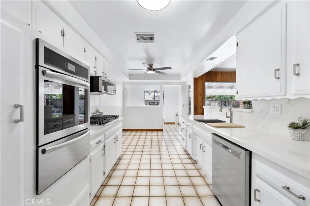 Welcome to 15030 Astoria St, ideally situated on a fully gated corner lot of nearly 8,000 sq. ft., featuring a sparkling pool and spa perfect for enjoying Southern California living. This beautifully remodeled single-story home offers 3 bedrooms, 2 bathrooms, plus a bonus room that adds valuable additional living space - either as an additional bedroom, media room and more, Inside, you’ll find gorgeous refinished hardwood floors, smooth ceilings, fresh interior paint, and numerous upgrades throughout, including updated kitchen and baths, new HVAC ducting, updated electrical switches and outlets, stylish light fixtures, ceiling fans, a new front door, and a newer roof. The spacious living room flows seamlessly into the expansive dining and family room, highlighted by a cozy fireplace and sliding glass doors that overlook the serene backyard and pool—creating the perfect space for both everyday living and entertaining. The updated kitchen features new quartz countertops, new stainless steel built-in appliances, a new sink and faucet, a charming breakfast nook, breakfast bar, and abundant cabinet space. The generous primary suite offers a relaxing retreat with a wardrobe closet, vanity area, and a tastefully remodeled bathroom with a newer tiled shower. The secondary bedrooms are well-sized and share a full hall bathroom. Step outside to the summer-ready backyard, complete with a pool, spa, brick BBQ, and large covered patio—an ideal setting for outdoor dining, entertaining, or simply relaxing. Additional highlights include central air and heat, updated bathroom fixtures, and a clear termite report. Conveniently located just minutes from Metro-link, schools, shopping, and easy freeway access. This one is sure not last!