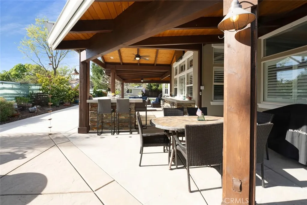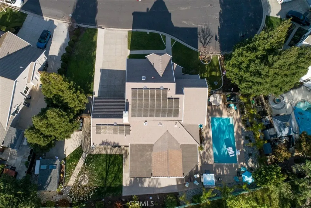 This beautifully upgraded 5-bedroom, 4-bathroom home is located on a private cul-de-sac near Downtown Livermore and within top-rated school districts. The property features a spacious 4-car garage and an extended driveway that accommodates up to eight vehicles, offering plenty of parking for family and guests. Inside, the home showcases luxury vinyl flooring, recessed lighting, designer lighting fixtures, ceiling fans, custom shutters, Wayne’s coating, and a fire sprinkler system. Fresh interior and exterior paint add to the home’s clean, updated feel. The large family room provides a welcoming space to gather, highlighted by a cozy gas fireplace. The chef’s kitchen is designed for both style and functionality, featuring luxury stainless steel appliances including a Monogram six-burner gas stove, double convection oven, and a built-in KitchenAid refrigerator. A large center island with table seating for six makes it perfect for cooking, dining, and entertaining. The spacious primary suite includes a fully remodeled designer bathroom with double sinks and a walk-in closet. A convenient downstairs bedroom with a full bathroom features a Murphy bed, allowing the space to also function as a guest room or home office. Additional features include dual air conditioning, an indoor laundry room, and abundant storage. The backyard is an entertainer’s dream, featuring a stunning outdoor arbor with seating for up to 22 guests, a large pool and jacuzzi, and a private yard that backs to a peaceful HOA nature trail. An outdoor studio offers flexible space for a gym, office, or creative studio. Additional highlights include a concrete tile roof and solar for energy efficiency. This exceptional Livermore home offers the perfect blend of luxury, space, and indoor-outdoor living in a highly desirable location.