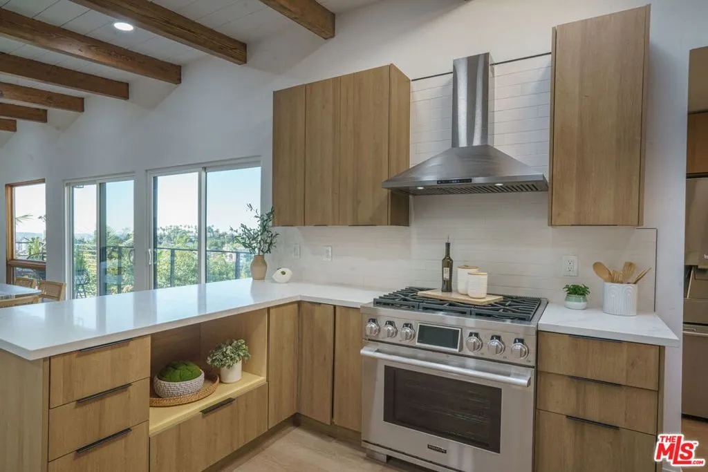 Welcome to 6374 Macal Pl a Hollywood Hills hideaway that feels like you're living on top of LA. Perched on a private street shared with just one other home, this modern-meets-classic retreat delivers completely unobstructed views and four full west-facing exposures for some of the best sunsets in all of Hollywood. Oversized sliders open the main living area to the outdoors, creating that effortless indoor outdoor flow everyone wants in the Hills.The kitchen was designed for people who love to cook and entertain custom wood cabinetry, soft-close throughout, sleek surfaces, and ample storage (with bonus storage below). Gather friends for cocktails at golden hour, host game night, or unwind with a quiet morning coffee in complete hillside silence. Original wood beams, vaulted ceilings, and natural light warm up every space.The primary suite sits privately on its own wing with a spa-like bath and potential for direct access to the lower deck. Custom closets elevate the bedroom for a true his-and-hers (or his-and-his / hers-and-hers) wardrobe setup.Sitting on a rare double-parcel lot, the outdoor possibilities are endless: build your dream deck, expand your entertainment space, set up a hammock or volleyball net, or explore ADU potential buyer to verify. Lush greenery, bright natural light, and panoramic views make this property feel like your own hillside escape.Close to local favorites like Beachwood Caf, The Front Yard, and nearby markets, with iconic hikes such as Runyon Canyon and the Hollywood Reservoir just a few miles away. DTLA sits roughly 8 to 10 miles out, and the nearest beaches are about 18 to 22 miles from your front door the perfect blend of nature, nightlife, and convenience. This is Hollywood Hills living with room to dream, play, entertain, and grow.