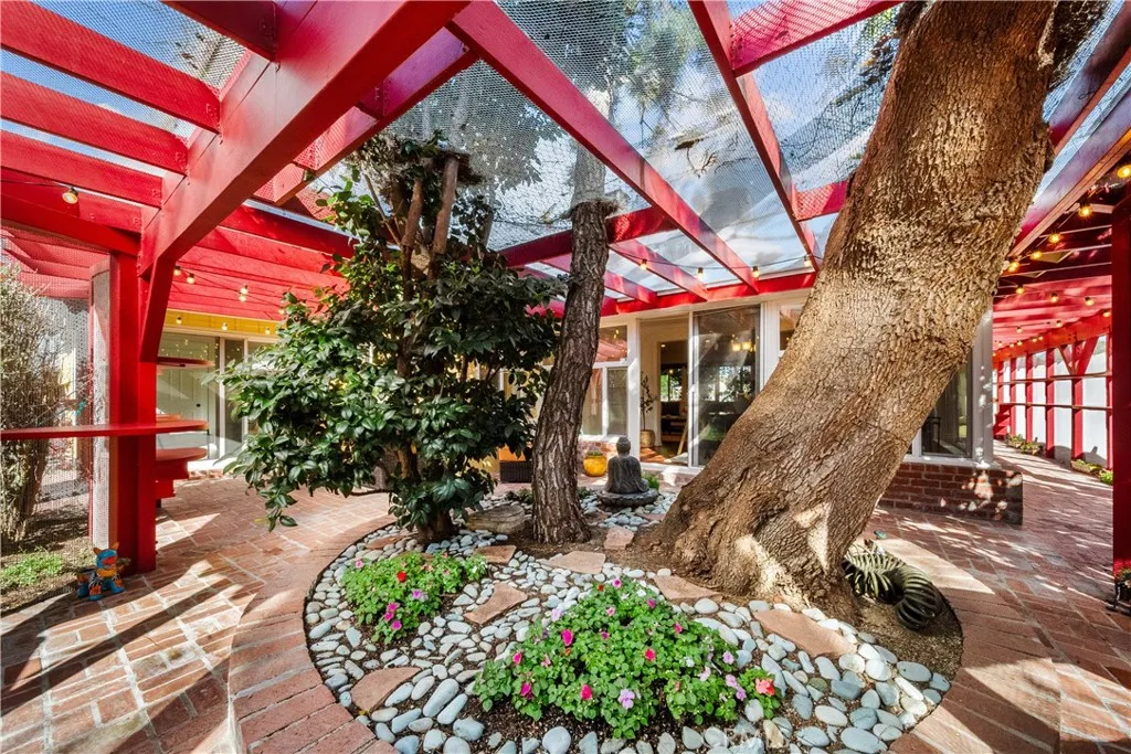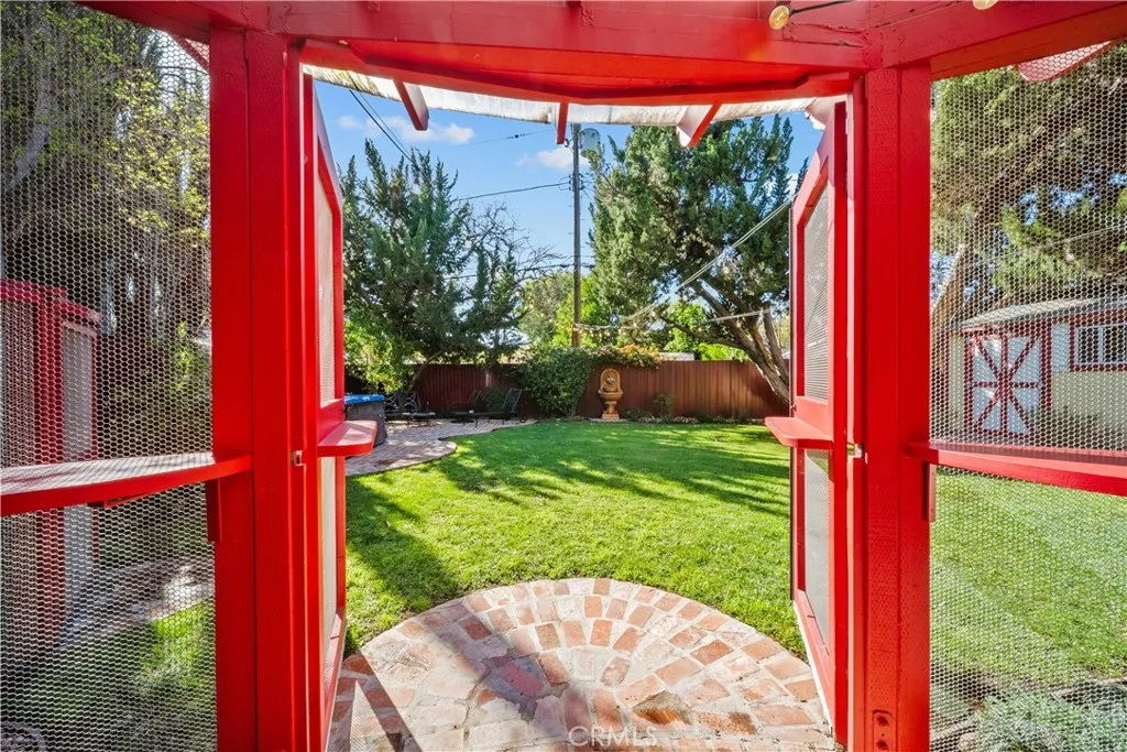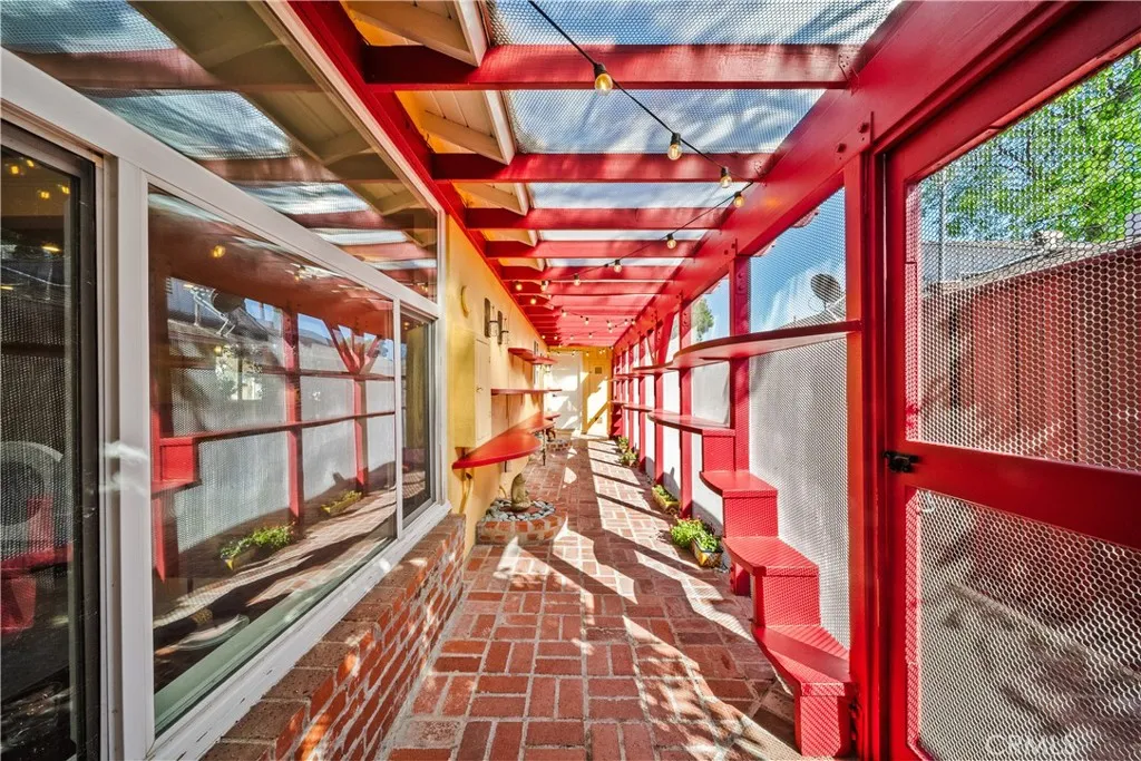 Imagine a home where luxury living and feline paradise exist in perfect harmony! Welcome to one of Northridge’s most unique and extraordinary properties, featuring 3 bedrooms, 2 bathrooms, and a fully permitted 733 sq. ft. custom Catio designed by world renowned cat behaviorist Jackson Galaxy of the TV show My Cat From Hell and designer Kate Benjamin. The expansive, fully enclosed Catio allows your cats to climb, lounge, explore, and safely enjoy the outdoors, creating an unparalleled indoor/outdoor lifestyle for both you and your beloved companions. Inside, the home is equally inviting! The stylish interior is light, bright, and freshly painted throughout, featuring beautiful wood and tile flooring, a cozy fireplace, and a state of the art security system. The primary bedroom offers an en suite bathroom, a relaxing sitting area, and direct sliding door access to the Catio, creating a seamless retreat for both you and your feline family. The thoughtfully designed layout provides comfortable living spaces ideal for everyday living and entertaining. Step beyond the Catio and discover a lush backyard retreat designed for unforgettable gatherings. Enjoy a newer spa, multiple seating areas, mature soaring trees, and a flexible structure offering endless possibilities for storage, hobbies, or creative space. The garage adds another layer of convenience with custom cabinetry, epoxy flooring, a large utility sink, and an included washer and dryer. Set back from the street with an oversized driveway, the property offers a sense of privacy while providing ample parking. Ideally located in a desirable pocket of Northridge near shopping, dining, and neighborhood amenities, this truly special property delivers a lifestyle unlike anything else on the market. For animal lovers and cat enthusiasts alike, this is more than just a home, it is a dream come true!