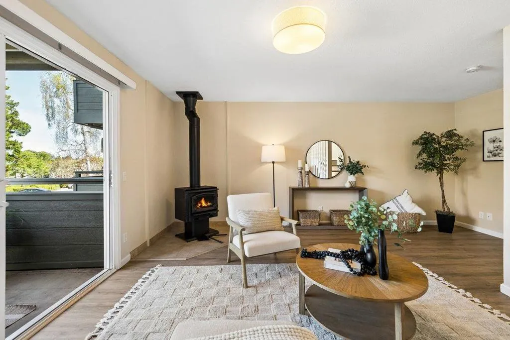 Peace, privacy and serenity in the hills of Redwood City. This townhouse style condo offers multiple outdoor spaces with serene views including partial Bay views from the primary bedroom. Enjoy morning coffee on the back deck and watch deer graze peacefully. Tranquility abounds! 2 bedrooms, 1.5 bathrooms over 1049 sq ft of bright living space. Primary features vaulted ceilings, ceiling fans and a private patio. Multiple built-ins create a home office nook between the two bedrooms and tremendous storage space in the second bedroom. A bright kitchen overlooks tranquil trees and opens to a bright dining space. The family room also features its own outdoor space creating seamless indoor outdoor living and entertaining. A massive crawl space on the ground entry floor with ample storage space. Easy 280 access and minutes to vibrant downtown Redwood City restaurants, shops, entertainment and so much more! The complex features a fabulous club house and pool with community barbeque space and ample hosted kids events!