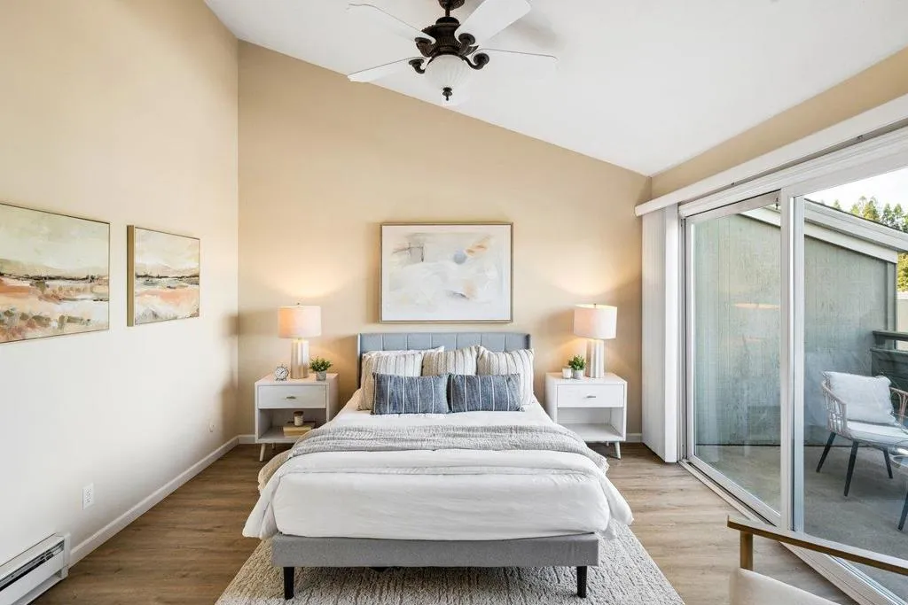 SELLER SAYS BRING AN OFFER! Peace, privacy and serenity in the hills of Redwood City. This townhouse style condo offers multiple outdoor spaces with serene views including partial Bay views from the primary bedroom. Enjoy morning coffee on the back deck and watch deer graze peacefully. Tranquility abounds! 2 bedrooms, 1.5 bathrooms over 1049 sq ft of bright living space. Primary features vaulted ceilings, ceiling fans and a private patio. Multiple built-ins create a home office nook between the two bedrooms and tremendous storage space in the second bedroom. A bright kitchen overlooks tranquil trees and opens to a bright dining space. The family room also features its own outdoor space creating seamless indoor outdoor living and entertaining. A massive crawl space on the ground entry floor with ample storage space. Easy 280 access and minutes to vibrant downtown Redwood City restaurants, shops, entertainment and so much more! The complex features a fabulous club house and pool with community barbeque space and ample hosted kids events!