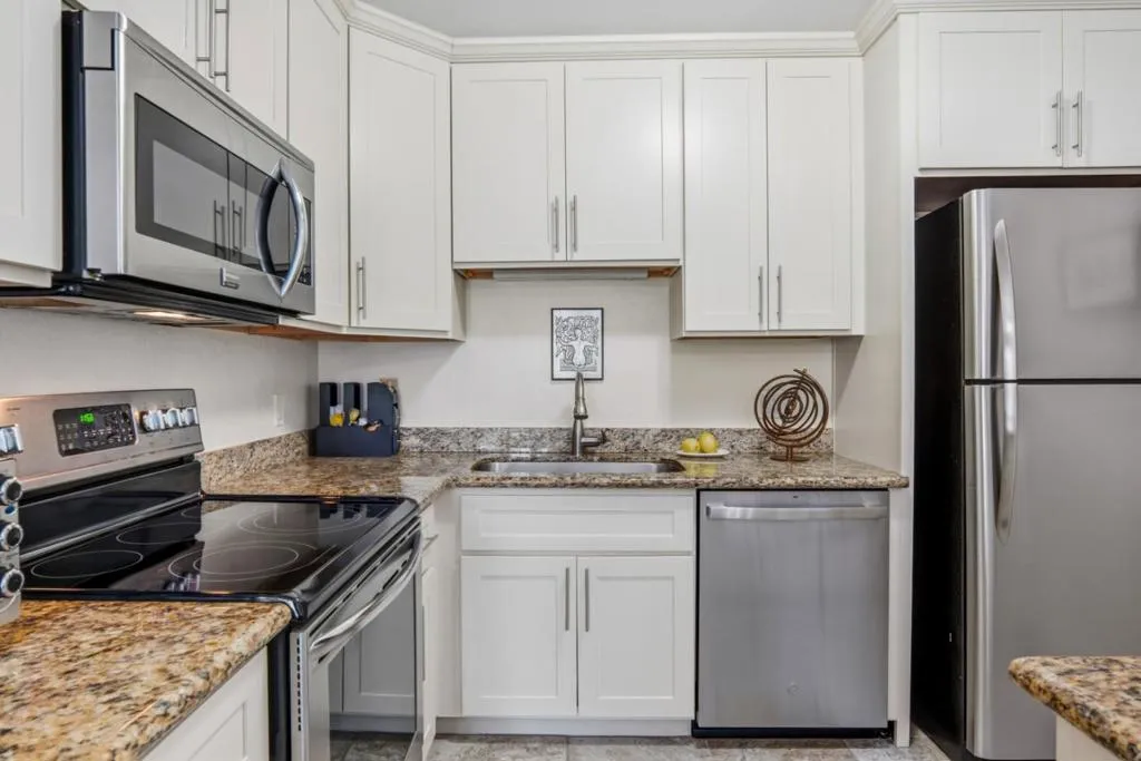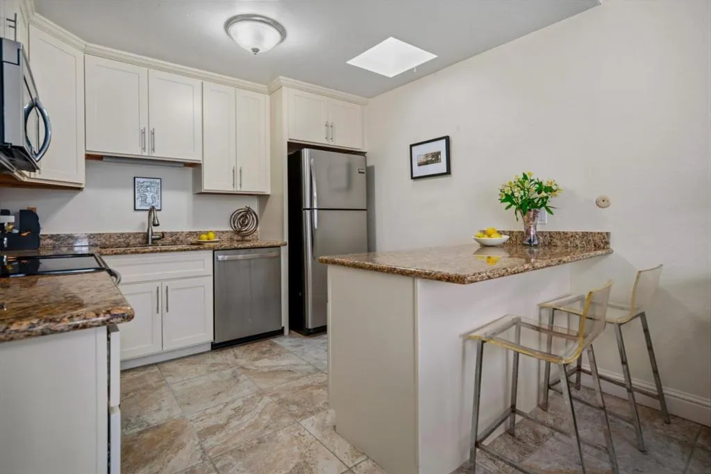 The exterior of Del Mission Court is currently being painted. This complex offers village living at its finest. Sited in downtown Carmel-by-the-Sea, this single-level corner-unit condo combines comfort, style, and an unbeatable location. The open floor plan features tile flooring, granite kitchen countertops, stainless steel appliances, crown molding, and plantation shutters throughout. This 1 bedroom unit includes a versatile bonus area, ideal for a home office or guest space. Skylights in the kitchen and bath provide abundant natural light. Additional highlights include a secure building, gated parking garage with extra storage and laundry facilities. Enjoy effortless access to everything Carmel has to offer, including award-winning restaurants, tasting rooms, boutique shopping, and renowned art galleries, all right outside your door. Enjoy walks along Scenic and the Pacific Ocean. This is the perfect golf getaway. Carmel School District.