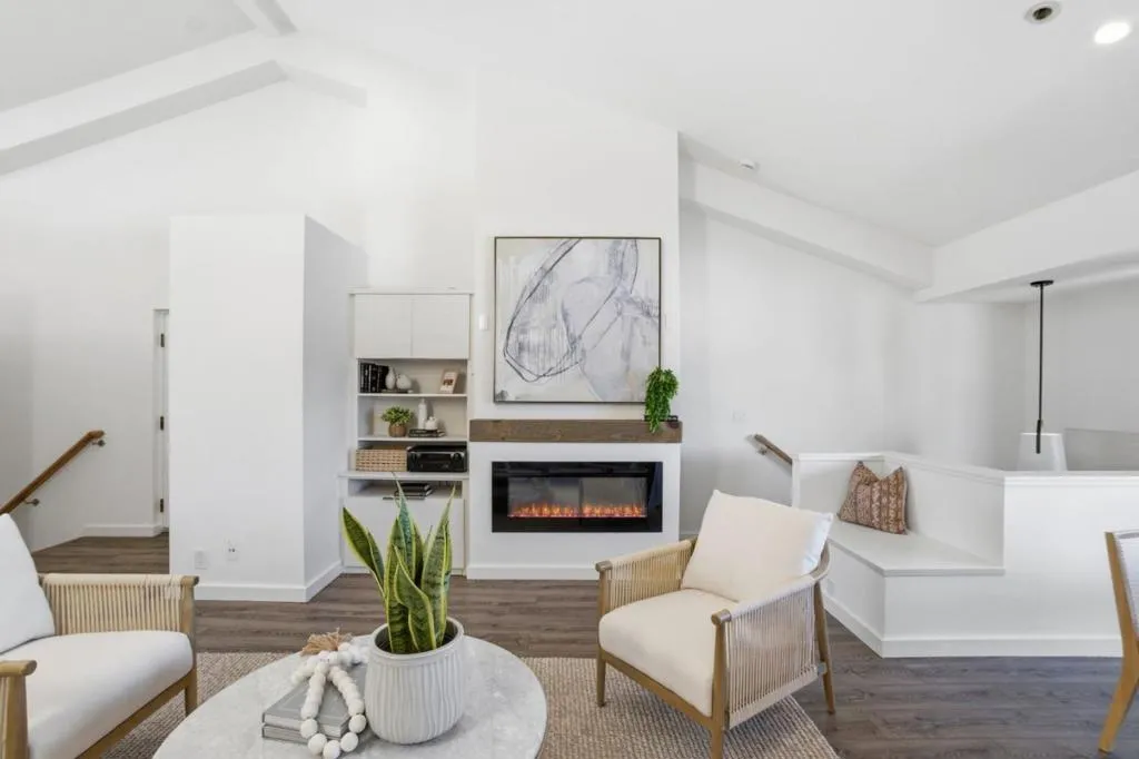 Top floor, two-level penthouse unit featuring dramatic vaulted ceilings with skylights on the main level, open concept living, dining and gorgeous kitchen, and views of the Western Hills! Downtown Palo Alto living at its finest, this two bedroom, two-and-a-half bathroom home offers an unbeatable location just a block away from Whole Foods, Peet's Coffee, Pizzeria Delfina and the fantastic dining and shopping along University Ave. Stunning kitchen updated with sleek modern cabinetry, peninsula for extra counter space and pantry unit for storage. Additional comforts include a half bath on main level, in-unit washer dryer, building elevator, deeded storage unit and two parking spaces in the secure underground garage. Top-rated Palo Alto schools including Addison Elementary, Greene Middle School, and Palo Alto High School (Buyer to verify) and proximate to Caltrain and Highway 101 for easy commuting. This is a must-see!