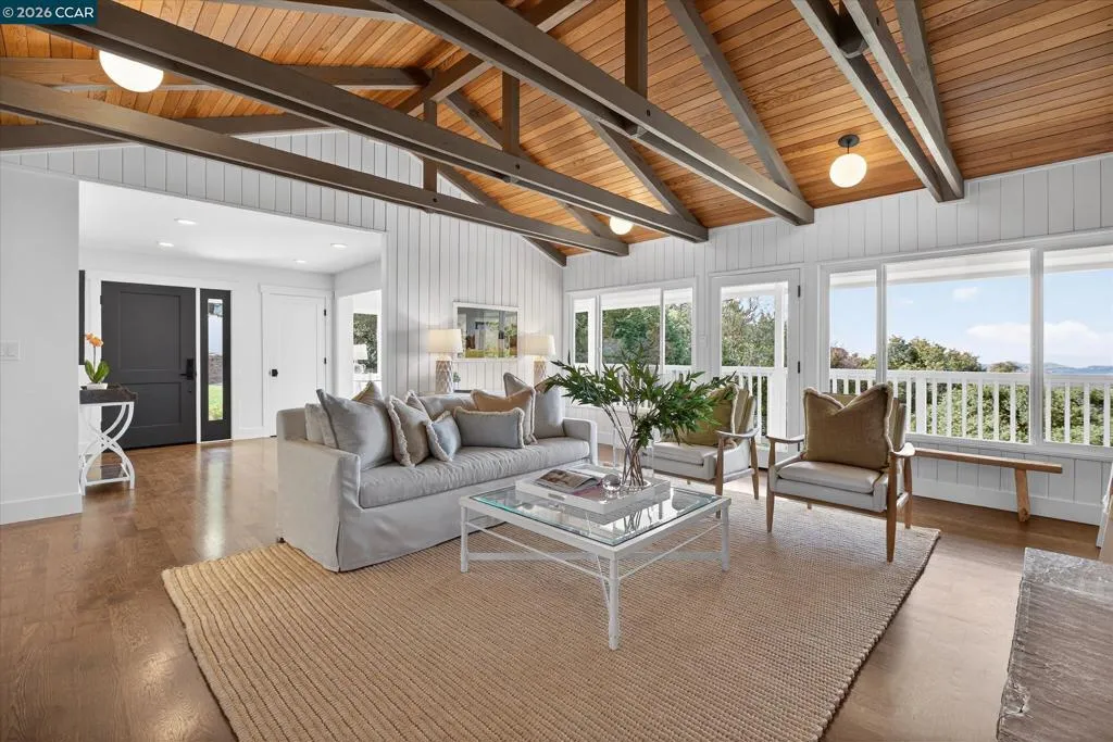 Idyllic modern farmhouse nestled in the Orinda hills with casual elegance and sweeping views all the way to Mt. Tam. High-end finishes and an inviting warmth greet you the moment you arrive at the gate. Completely renovated in 2018, this is a home that’s as livable as it is beautiful with a very functional floor plan, gorgeous chef's kitchen, and open living spaces that capitalize on breathtaking views. The serene 1.2-acre setting unfolds across flat land and gentle slopes with ancient oaks and rugged boulders. A level pad with views awaits your vision: add a pool, landscape with lush gardens, or enjoy the natural grassy meadow just as it is. Bring your expansion ideas - a downstairs bonus room PLUS a 1,651 sqft walk out basement means there’s room to double the size of the home within the existing footprint. This serene oasis feels a world away from the hustle and bustle of the Bay Area, yet is just minutes to downtown Orinda and Berkeley, top rated K-12 schools and commute routes. There is room to breathe, room to grow and room to dream here. Come kick off your shoes and stay awhile, this very special property is not to be missed! Open Saturday & Sunday 1-4 PM.