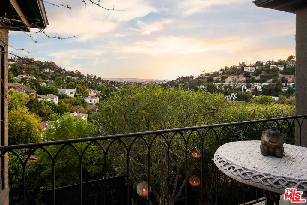 Featured by Rue Magazine. Stunning Designer Home in Silver Lake's Coveted Moreno Highlands. This sophisticated 3 bed / 4 bath retreat has been beautifully remodeled to offer a rare blend of exquisite craftsmanship and luxury living. Step inside a cedar front gate and enter the hometo a beautifulliving room with European white oak floors in a chevron pattern, a custom viola marble fireplace, hand-plastered sconces, and solid hardwood crown molding. An elegant yet inviting space, this room has incredible natural light, warmth, and stunning sunset views. The upscale kitchen boasts rare calacatta turquoise marble countertops, Nickey Kehoe handmade pulls, Miele appliances, and a custom bar with antique brass brackets, adding a touch of timeless elegance. Enjoy a beautiful breakfast nook adorned with top-of-the-line fabrics and textiles and a grand dining room with fully retractable steel doors that open to a balcony with breathtaking views of the city skyline, Griffith Observatory, Hollywood Sign, and even a peek of the ocean on clear days. The home features Waterworks fixtures, a Water Monopoly bathtub, Apparatus light fixtures and Roman and Williams light fixtures. Downstairs an entertainer's dream awaits, with a large projection room perfect for movie nights and unwinding after a long day. Step outside to a newly landscaped terraced yard featuring passionfruit, avocado, pomegranate trees, and a vegetable garden. This stunning property has a 2 car garage offering direct access, is located within the Ivanhoe School District and is within close proximity to restaurants, coffee shops, grocery stores and the Silver Lake Reservoir. Enjoy a walkable neighborhood with views around every corner of the city of Los Angeles and Hollywood hills before coming home to a picturesque retreat with thoughtful designer touches throughout. This special property is a must see!