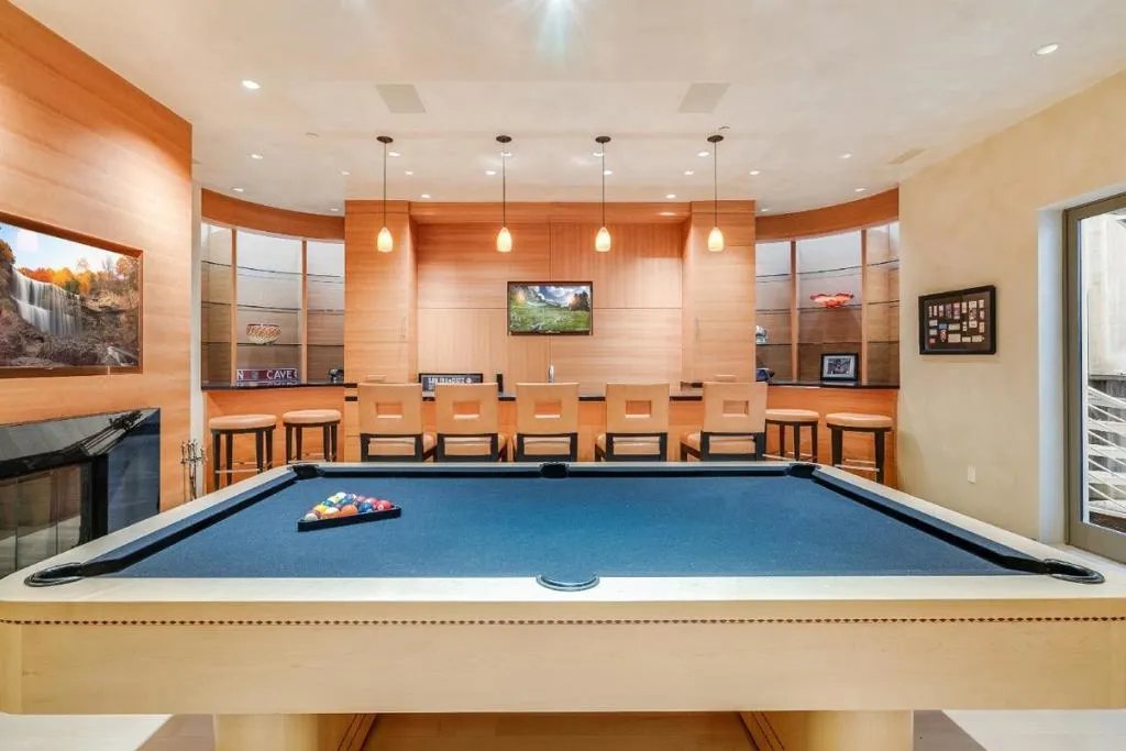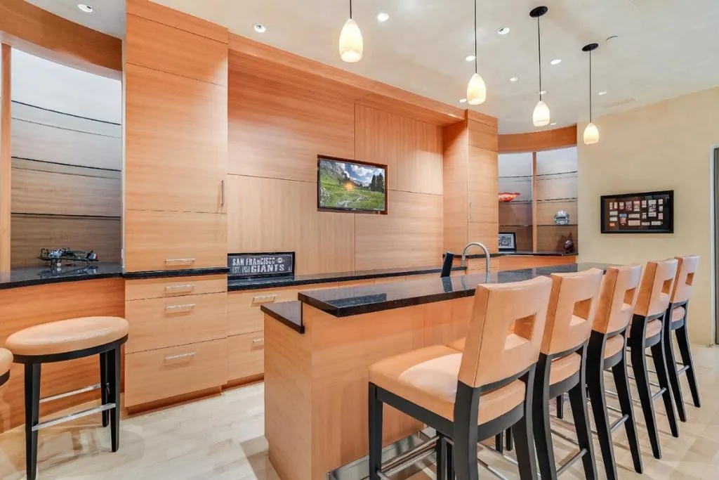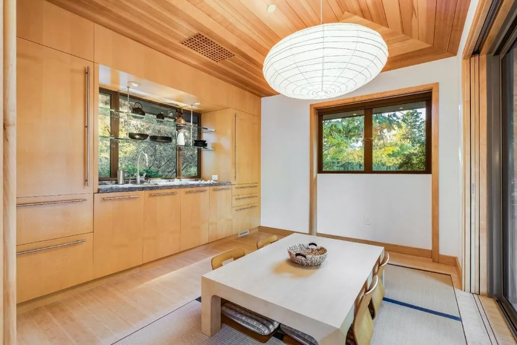 Contemporary masterpiece with 2-story guest house, pool pavilion, plus pool and spa on just over 1 acre of manicured gated grounds. Exotic woods of curly maple, pear, and Sapele mahogany complement maple and Halila limestone floors and counters in Brazilian granite and limestone. Graceful curves adorn walls, ceilings, windows, and cabinetry that maximizes storage. 5 bedrooms and 6.5 baths, library, lounge, full bar, 9-seat theatre, 2,000 bottle wine cellar, fitness center with steam & sauna, plus 2 offices one with secret Orient Express train car room with overhead train track that runs through both rooms. The guest house is designed in a Japanese teahouse style and the pavilion has a full kitchen for poolside entertaining. Meticulously landscaped grounds have many water features including streams, ponds, and waterfalls. Behind the scenes is home automation, security, whole-home backup generator, radiant heat & EV charging in the 5 car garage. Desirable cul-de-sac and close-in location. Excellent Los Altos schools.