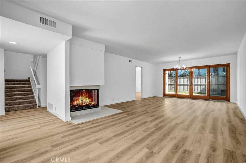 Located in the highly sought-after Beachwalk community of Huntington Seacliff, this beautifully remodeled and truly turn-key home offers a great blend of modern updates and coastal living. The spacious Model F – Plan E floor plan is open and filled with natural light and features 4 bedrooms and 3 full bathrooms, approximately 2,260 square feet of living space, and a 2-car garage. The home welcomes you with great curb appeal including a lush front yard with beautiful planting areas and a gated private courtyard with paver flooring that creates a warm and inviting entry. Inside, the light-filled living room features dramatic floor-to-ceiling windows and a beautiful fireplace that serves as the focal point of the room. The dining room features an elegant chandelier and French doors that open to the backyard, creating a great indoor-outdoor flow for entertaining. The remodeled kitchen features white cabinetry, quartz countertops, subway tile backsplash, stainless steel appliances including a double-door refrigerator, and a trey ceiling with recessed lighting. The kitchen opens to the family room with a ceiling fan and sleek corner sliding French glass doors leading to the backyard. The main level also includes a spacious bedroom and a beautifully remodeled full bathroom, offering flexibility for guests, extended family, or a home office. Upstairs, the spacious primary suite features vaulted ceilings, his and hers closets, and a newly remodeled primary bathroom with a double sink vanity and a separate seated makeup vanity. Two additional spacious bedrooms and a fully remodeled hall bathroom complete the upstairs. Additional interior highlights include new interior paint and baseboards, luxury vinyl plank flooring and carpet, newer windows with shutters, upgraded ceiling fans, skylights, and a tankless water heater. The private backyard features custom brick flooring and artificial turf, creating a low-maintenance outdoor space. The exterior has been recently painted and the roof was replaced by the HOA within the past 10 years. The home is located just steps from one of the community pools and the Beachwalk community offers resort-style amenities including multiple pools, spa, sauna, clubhouse, sand volleyball courts, walking paths, and expansive greenbelts. Located just minutes from the beach, Huntington Beach Pier, Pacific City, and Seacliff Country Club.