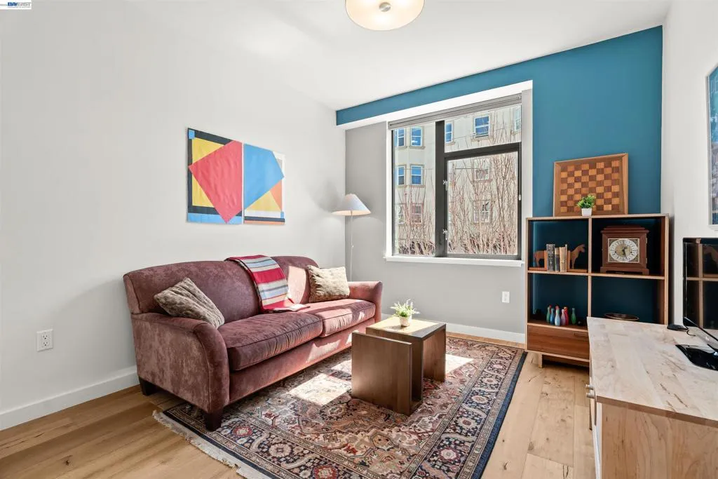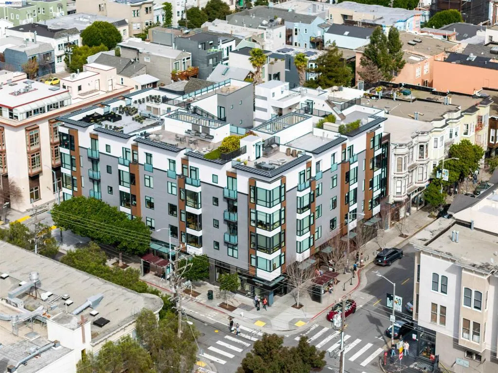 Bathed in natural light, this exceptional corner-unit residence in a contemporary 2018 building offers refined city living w/ modern design & luxury finishes. The open-concept living areas feature expansive windows & white oak wood floors. The chef’s kitchen is sleek w/ Bosch appliances, a custom panel refrigerator, dishwasher, induction cooktop, built-in microwave & wine fridge. A private hallway leads to the sleeping quarters & a laundry closet w/ washer & dryer. The primary suite offers large picture windows, a custom walk-in closet, and a spa-inspired bath w/ soaking tub, glass shower, & dual vanity. The 2nd bedroom also features a walk-in closet & is served by a hall bath w/ a walk-in shower & striking floor-to-ceiling tilework. Additional highlights include one deeded parking space, secure garage, elevator access, and bike storage. Enjoy the rooftop terrace w/ BBQ stations, lounge areas, & sweeping city views. Located in Hayes Valley, this home is steps from acclaimed dining, boutiques, & Trader Joe’s. The neighborhood often features street closures for local entertainment & community events, creating a lively atmosphere. Enjoy nearby cultural venues, theaters, & parks, w/ easy access to BART, MUNI, tech shuttles, & major freeways for seamless Bay Area commuting.