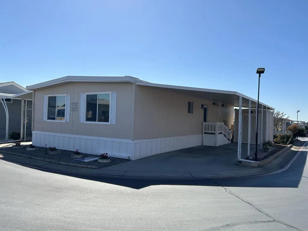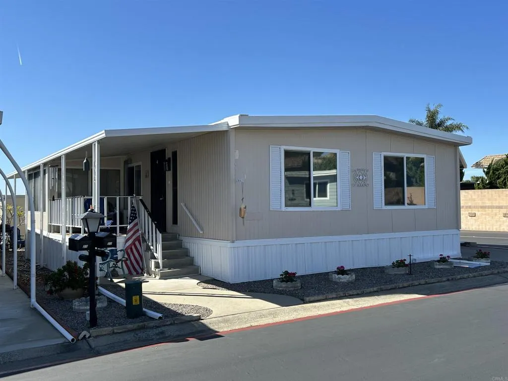 No Space Rent in a Resident-Owned 55+ Community! This move-in ready corner-lot home offers affordable homeownership in desirable North County. The spacious layout includes a bright sunroom, fresh new interior paint, and new flooring throughout. The upgraded kitchen features modern cabinetry, with refrigerator, washer, and dryer included for added convenience. Additional upgrades include a new water heater, updated primary bath vanity, and a guest bathroom with walk-in shower and newer vanity. Enjoy low-maintenance landscaping, perfect for easy living. Located in Vista Village, a welcoming and active senior community offering exceptional amenities including a clubhouse, heated saltwater pool, spa, fitness room, billiards, dog park, and RV parking. The low HOA of $355/month includes water, trash, cable, and internet, providing outstanding value. Prime walkable location close to shopping, dining, grocery stores, banking, and public transit. Pet friendly: 1 dog and 1 cat, or 2 indoor cats allowed. One of the most affordable ownership opportunities in North County—schedule your showing today!