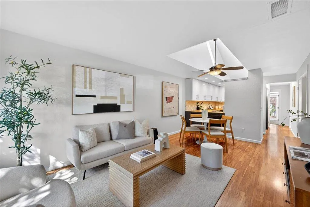 Welcome to this beautifully updated single-level townhome in the desirable Canoas Park community. This end-unit feels like a single family home, with attached garage and spacious backyard with private hot tub. Don't be dismayed by proximity to Almaden Expwy. Step inside to quiet tranquility and modern design. The updated kitchen features modern and sleek soft-close cabinetry, butcher block countertops, a gas stove/oven range, built-in microwave, and pantry, creating a warm and functional space for cooking and gathering. Natural light fills the home with vaulted ceilings in every bedroom with its own skylight. Step outside to a large, very private backyard perfect for relaxing or entertaining. Enjoy evenings in the hot tub, a mature orange tree, and separate shed. The home backs to the community's private park, offering a peaceful and scenic setting just beyond your yard. Additional highlights include an attached one-car garage with an EV charger and convenient inside laundry. Located just minutes from vibrant downtown Willow Glen, you will love the charming shops, excellent dining, and strong sense of community. Tucked in a quiet neighborhood yet close to everything, the home also provides easy freeway access for smooth commuting and everyday convenience.