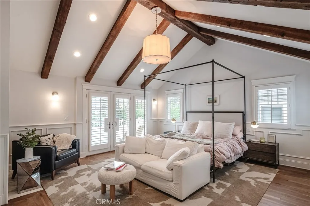 Located on a coveted block in Manhattan Beach’s Tree Section, 2100 Pine Avenue is a custom-crafted residence distinguished by warmth, architectural character, and an exceptional level of detail. Built in 2008 and meticulously maintained, the home offers five bedrooms, four-and-a-half baths, and approximately 3,180 square feet of thoughtfully designed living space. From the moment you arrive, the home conveys a sense of story and substance that is increasingly rare. Rich with bespoke detail, the interiors are defined by beamed ceilings, walnut floors, custom millwork, and beautifully layered finishes that bring depth, texture, and timeless appeal to every room. Thoughtfully designed and deeply inviting, the home balances refined craftsmanship with effortless livability. At the center of the home, the chef’s kitchen is both striking and functional, featuring an oversized Calacatta marble island, a 48-inch six-burner Wolf range with grill, abundant storage, and a butler’s pantry with wine refrigerator. Adjacent living spaces open seamlessly to a private backyard retreat complete with a built-in outdoor kitchen, fireplace, additional wine refrigerator and dedicated dining area designed for year-round entertaining. Privately situated, the primary suite offers soaring ceilings and a true sense of retreat, complemented by a custom California Closets walk-in closet that pairs beauty with exceptional function. Additional highlights include dual-zone central air conditioning, EV charging capability, and a finished garage with built-in storage.