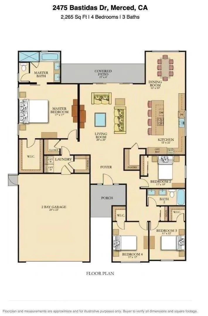 PRACTICALLY BRAND NEW! Opportunity to own this 2021-built home in the modern community of Moraga of Merced. Exceptional condition. 2475 Bastidas Drive is the Moonlight plan of the Skye series--the luxury line of the community built by Lennar. Sunny, south-facing single-story home with 4 spacious bedrooms, 2 large bathrooms. Home features a chef's kitchen with a must-see commercial-sized fridge, stainless steel gas appliances, walk-in pantry, island dining plus eat-in kitchen area. Primary bedroom is massive with an enormous walk -in closet, en-suite features dual-vanities with separate soaking tub and standing shower, enclosed W/C. Laundry room has another walk-in storage room. Kitchen, dining area room and living room flow seamlessly together. Step out to the nearly-8000 sf of yard space. 2-car garage, with tankless water heater. Smart home system includes Lutron dimming lights, myQ garage door opener, keyless smart-home entry. Bernasconi Park is located in the heart of the community with large soccer field/baseball diamond, basketball courts, children's playground, BBQ & picnic areas. Easy access to UC Merced and shuttle, Raleys, Sprouts groceries, Starbucks, Dignity Health Hospital and more. HOA $106/mo includes front yard landscaping.