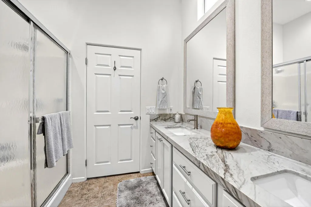 Set against a breathtaking mountain backdrop in the heart of La Quinta Cove, this beautifully reimagined desert retreat offers the perfect blend of modern upgrades, resort-style outdoor living, and refined privacy. From the moment you arrive, the home makes a striking impression with its gated entry, expansive paver driveway, updated exterior paint, and dramatic poolside setting designed to capture the beauty of the desert from sunrise to twilight. Inside, the home has been thoughtfully renovated to create a fresh, cohesive, open-concept design. Large-format 20'x20' porcelain tile runs throughout, complemented by resurfaced walls and ceilings with a light hand-troweled finish for added character and sophistication. The remodeled entry, living, kitchen, and dining areas flow seamlessly together, creating an inviting space ideal for both everyday living and entertaining. The chef-inspired kitchen has been extensively upgraded with custom cabinetry, a center island, Quartzite countertops and backsplash, a Franke stainless steel sink and faucet, and a suite of stainless KitchenAid appliances including an electric range, refrigerator, dishwasher, and wine cooler. The living area is anchored by a stylish new fireplace mantel, while upgraded LED recessed lighting, solar tubes, and roll-up solar shades enhance both comfort and ambiance throughout the home. The bedrooms and baths continue the home's elevated design, with updated ceiling fans in every room and beautifully improved bathrooms. The guest bath has been tastefully remodeled with a new vanity, designer tile tub/shower enclosure, frameless shower door, retextured surfaces, and a skylight that fills the space with natural light. Outdoors, the property truly shines as a private desert oasis. Enjoy a spectacular custom pool and spa with Pentair heater, pump, and salt cell, surrounded by extensive hardscape, lush mature landscaping, illuminated pathways, and multiple areas for relaxing or entertaining. A fire feature at the east end of the pool adds warmth and drama, while gas and electric have already been extended for a future outdoor cooking area. Towering cacti, mood lighting, and incredible mountain views create a setting that feels both luxurious and serene. This is a rare opportunity to own an extensively upgraded La Quinta Cove home where modern comfort, design, and unforgettable outdoor living come together beautifully.