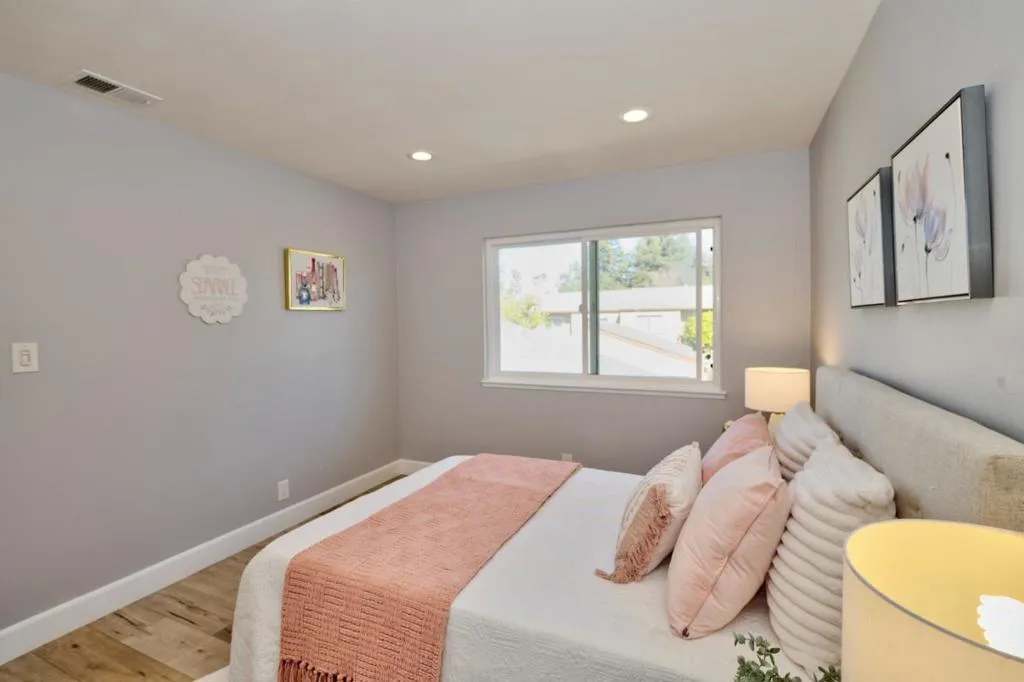 Updated Real Townhouse (NOT Condo Ownership!) with 2-car side-by-side garage & private courtyard *Quiet location at center of the community *Bright/airy floor plan, vaulted ceilings, dual-pane windows, 3-skylights *Fresh interior paint *High-quality laminate wood flooring in living area and bedrooms *Durable tile flooring in kitchen & baths/laundry *Brand-new high-end carpeting on staircase *Elegant fireplace, modern crown molding in living area *Dimmable recessed lighting throughout *Wide sliding glass door in dining area *Stainless steel stove/hood/sink, brand new faucet, modern cabinetry, updated lighting, garden window, quartz countertops w/ full backsplash, breakfast bar in kitchen *Breakfast nook (or home office) area *Refrigerator/washer/dryer included *Vaulted ceilings & recessed lighting in master room *Recessed lighting in 2 bedrooms *Closet organizers in bedrooms *Skylights in 2 bathrooms & above the staircase *Copper Plumbing upgraded throughout *New 50-gallon water heater *Central A/C *Short commute to Apple, NVIDIA, Google, Meta, and many major Silicon Valley employers *Walking distance to shops, restaurants, parks, supermarkets & Top-rated schools *Easy access to Highways 85 & 280 *Swimming pool, spa, clubhouse, playgrounds in community *Low HOA fee including water