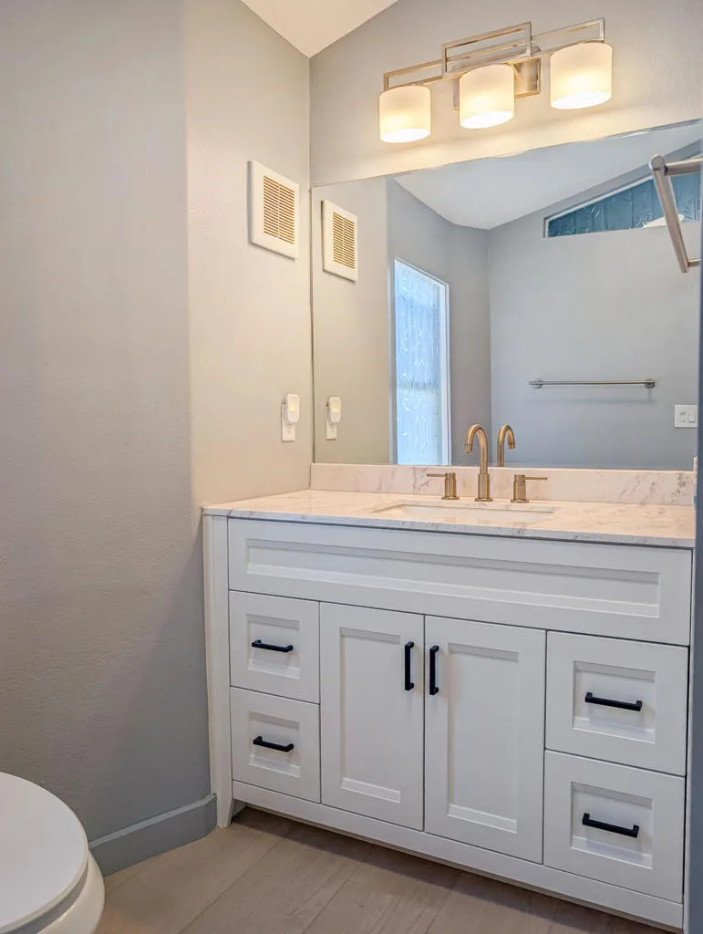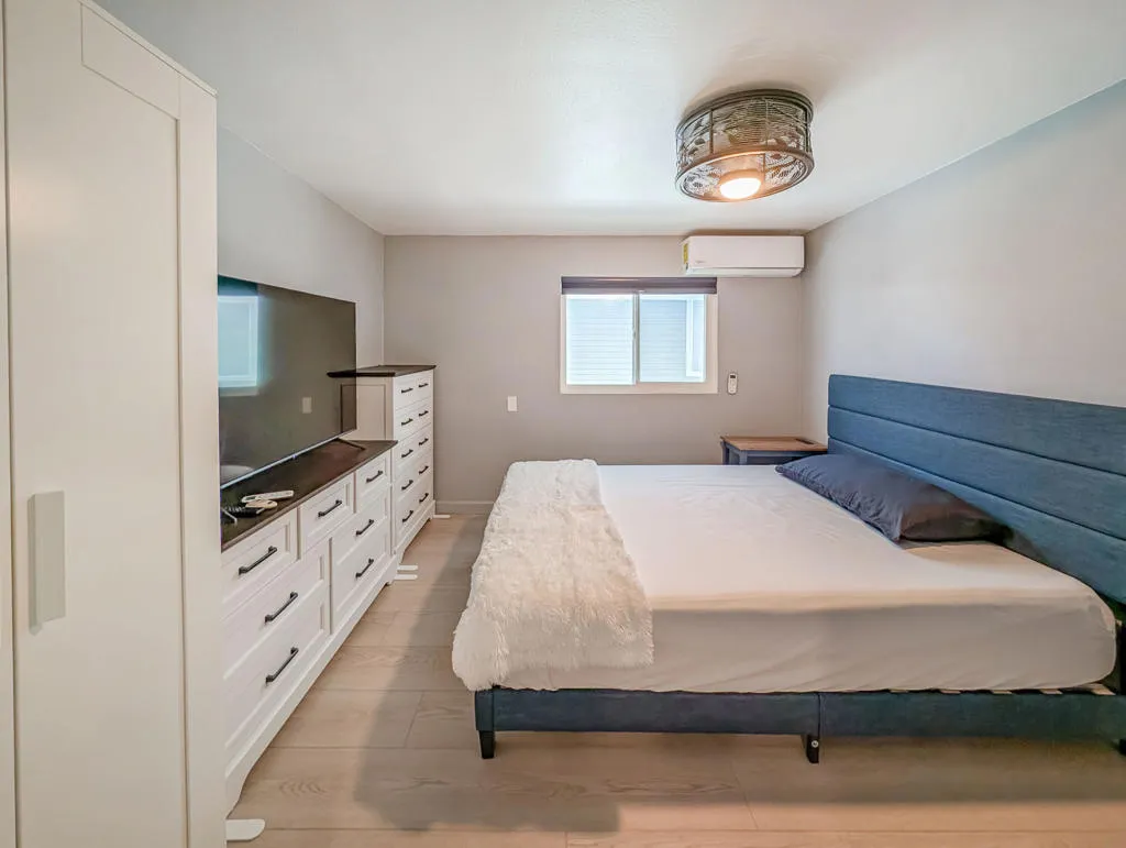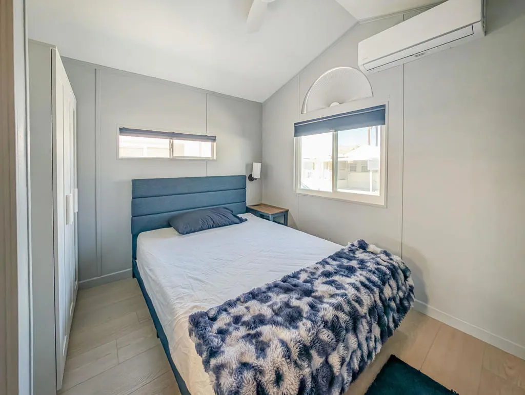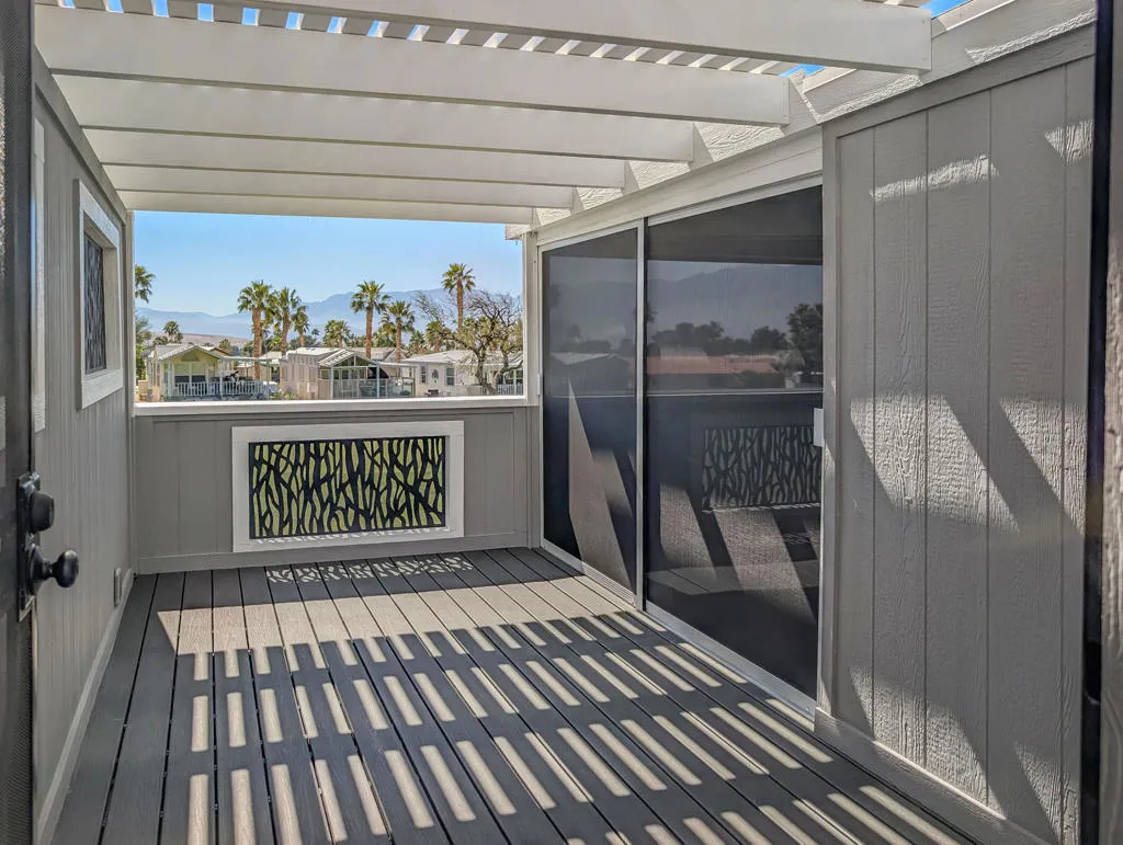 This impressive, recently remodeled 2002 Fleetwood Park Model offers approximately 750 square feet of thoughtfully designed living space. Featuring two bedrooms (one with room for a king size bed) and one and a half bathrooms, the home includes a luxurious spa-style bathroom with a walk-in tile shower and an energy-efficient flush toilet system. The property showcases quality construction and expansive views of the 8th hole on the golf course. High-end upgrades include a gourmet kitchen equipped with a modern backsplash and range hood, solid surface counters, dishwasher, washer/dryer, three mini-split units, garbage disposal, and premium vinyl flooring throughout--ideal for entertaining guests. Enjoy the large deck, which provides scenic views of water features and serves as a private wildlife sanctuary, perfect for relaxing while watching sunsets over Mt. San Jacinto. Located in the 55+ Caliente Springs Resort community, residents have access to amenities such as a mineral hot spring pool and spas, fitness center, 9-hole golf course, eight pickleball courts, tennis courts, library, chapel services, and a variety of organized community events. Please note, the lot is not owned; space rent is $950 per month.