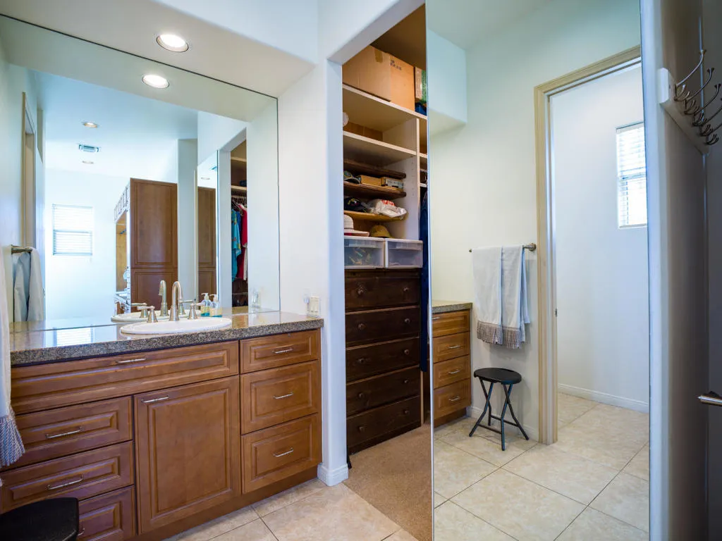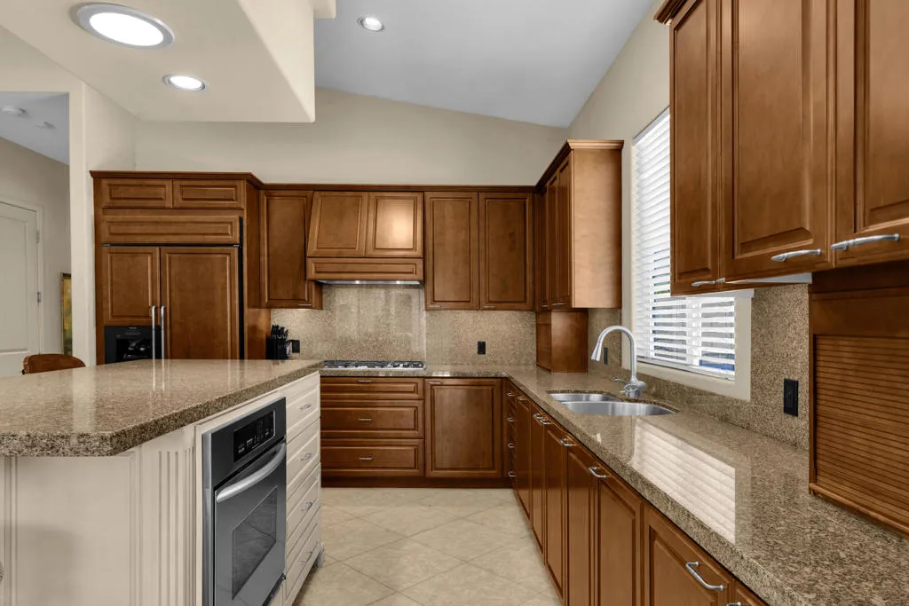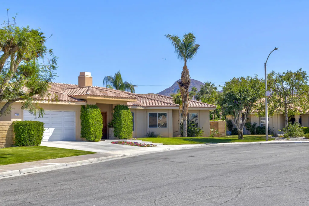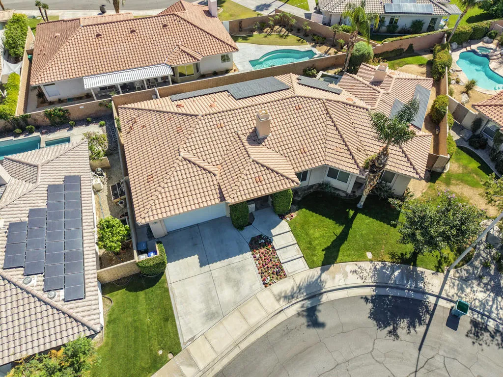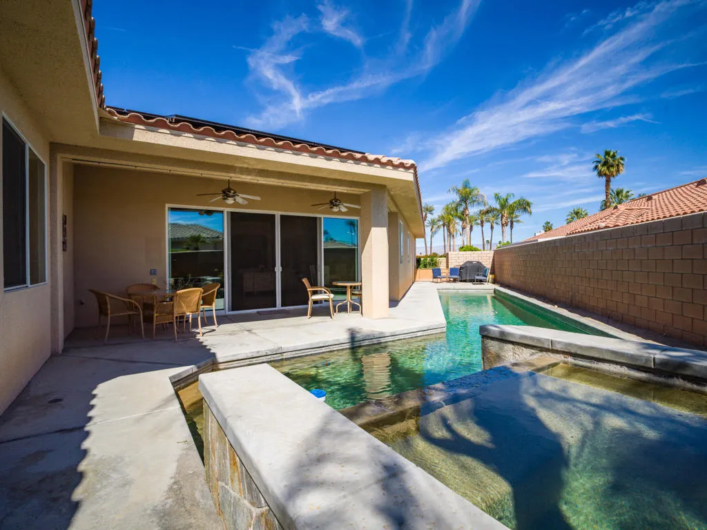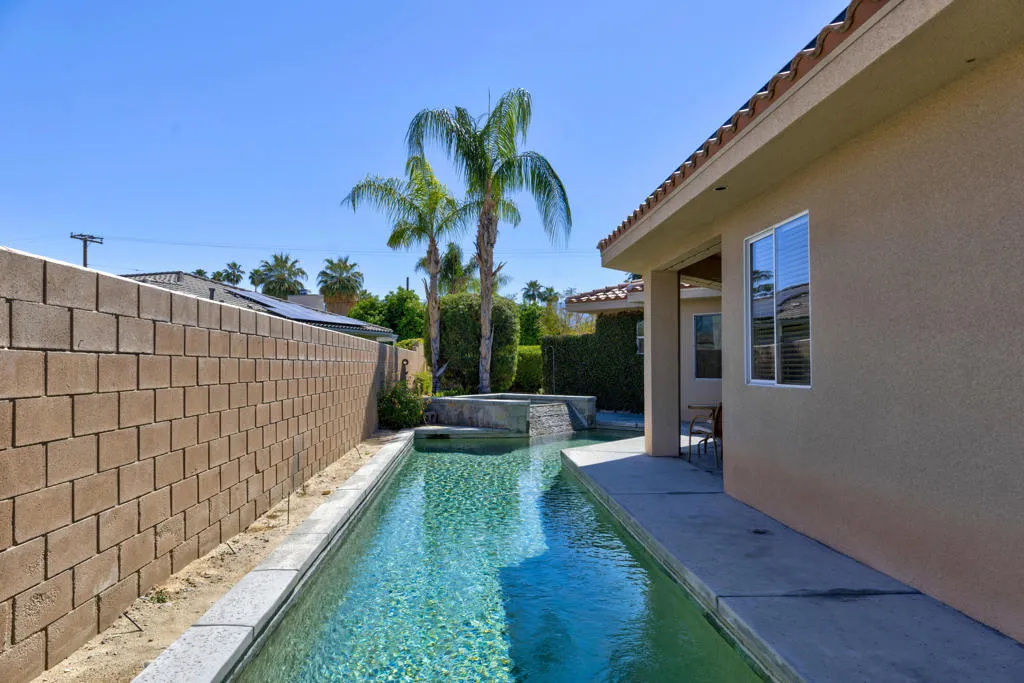 The Grove is the hidden gem of Palm Desert. With NO HOA, this community of 90+ homes all sit on beautiful cul-de-sacs, and are located only a minute from Highway 111 and the amazing El Paseo district. The location couldn't be better. This custom-built home has an amazing open concept, with an inviting fireplace in the great room and vaulted high ceilings. The lap pool and spa add an additional benefit to the home. Solar on the roof saving you a fortune in electric bills. The Kitchen has a large granite island, along with matching counter-tops.The kitchen appliances are far and above in quality and style. Custom shelving makes the kitchen efficient with lots of storage. There are four bedrooms (newly carpeted) along with 3 1/2 bathrooms. A spacious attached two car garage has many built-in cabinets. The walk-in closet in the primary bedroom is only outdone by the room's intimate fireplace. A quartz counter-top in the laundry room, and upgraded marble counter-tops in the bathrooms allow this home to shine. This unique custom home built in 2005, must be seen to believe. This is steps above a tract home. Did I mention there is no HOA?