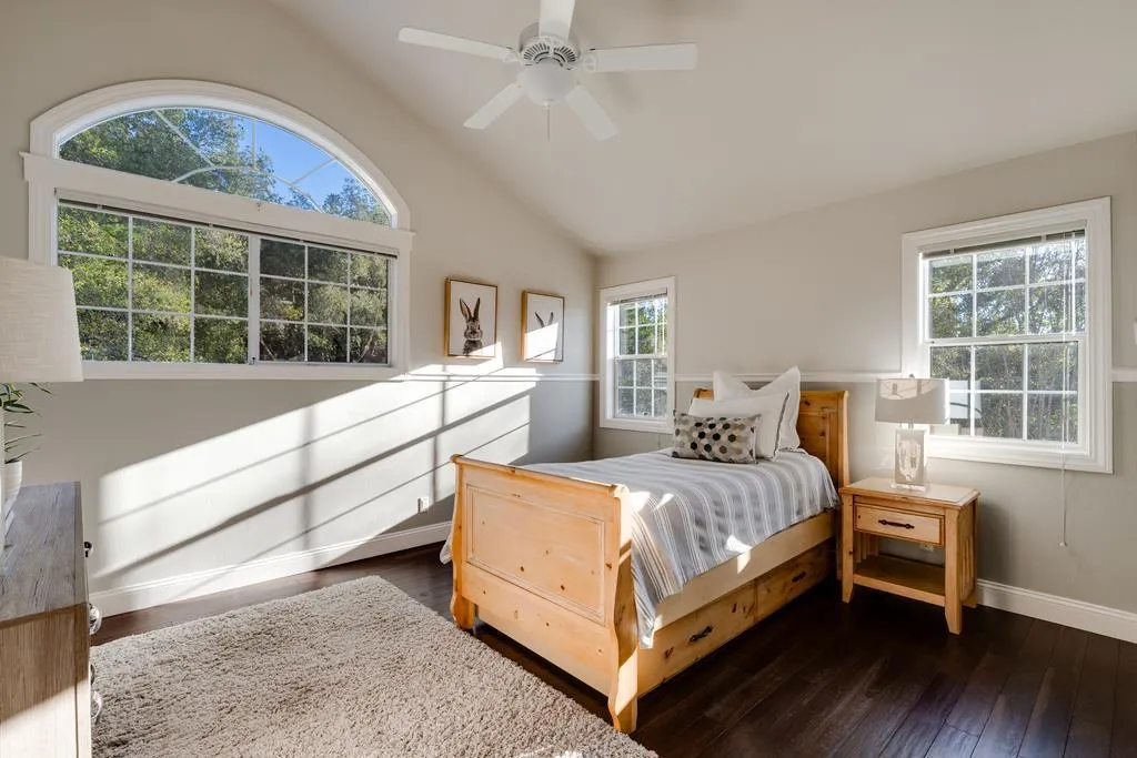 Let's just get this out of the way, the view here is ridiculous. The kind that interrupts conversations. Someones halfway through a sentence, glances out the window & suddenly the whole room goes quiet for a second. Some days its crystal clear across the valley. Other days clouds drift through the mountains. At night, the lights below start to sparkle. The main living spaces were clearly designed around it. The kitchen & family room sit in the center of the home & naturally become the gathering spot. Someones cooking, someones leaning on the counter, & before long everyone has drifted toward the windows again. Outside, two large connected decks make entertaining easy & the hot tub tends to become the evening destination once the valley lights come on. A garden path leads past raised beds to a small vineyard, giving the property its own little slice of Napa, just with ocean views. The primary suite is grand & positioned perfectly toward the valley & ocean beyond, complete with a see-through fireplace & a copper soaking tub that tends to turn five minutes into an hour. There's also an office with the same outlook, which means you'll never need a generic Zoom background again. Space, privacy, fresh air & a setting that somehow manages to steal the show every single time.