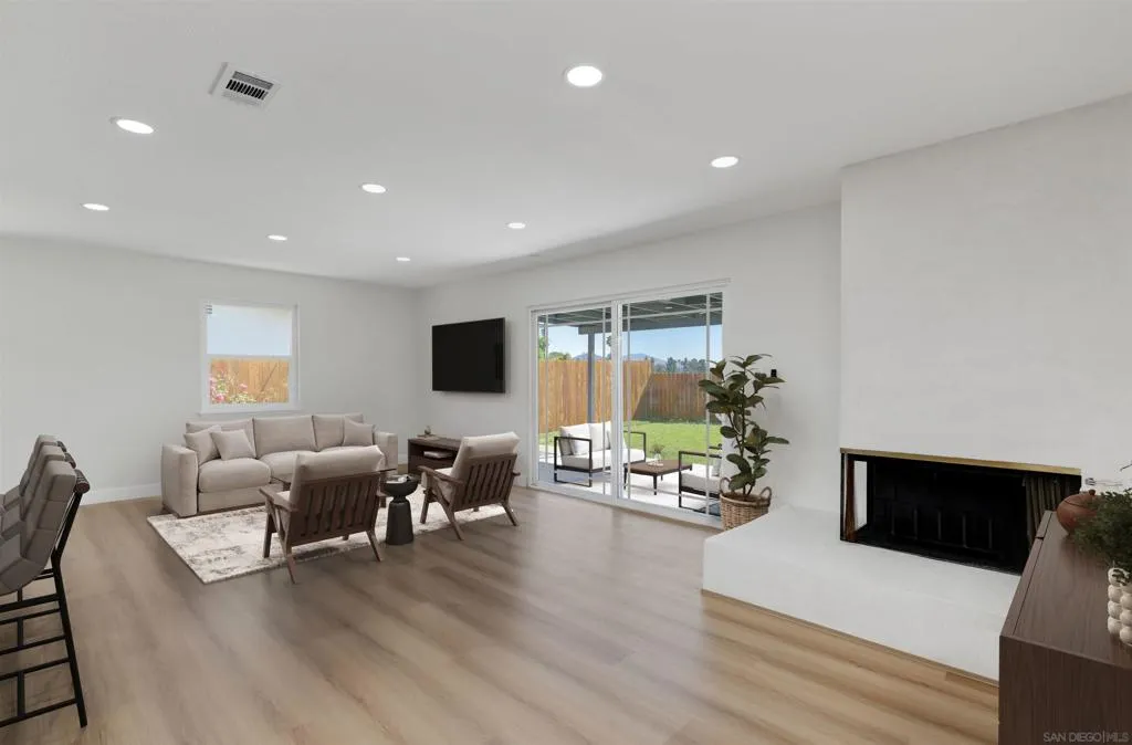 (virtual staging) Welcome to this beautifully remodeled single-story home in the highly desirable San Carlos neighborhood of San Diego. This charming residence blends classic ranch-style character with modern updates throughout. Offering 4 bedrooms, 2 bathrooms, and approximately 1,356 sq ft of living space, the home features a bright open floor plan filled with natural light. The inviting living room is anchored by a cozy fireplace, creating a warm and welcoming space for relaxing or entertaining. The fully remodeled kitchen showcases modern cabinetry, sleek countertops, stainless steel appliances, and designer fixtures, flowing seamlessly into the dining and living areas for easy everyday living. Both bathrooms have been beautifully renovated with contemporary finishes, while the four spacious bedrooms provide flexibility for family, guests, or a home office. Step outside to enjoy indoor-outdoor living with a covered patio and private backyard—perfect for entertaining, dining, or simply enjoying San Diego’s year-round climate. Additional highlights include updated windows and doors, modern lighting throughout, and a 2-car attached garage with direct access to the kitchen. Conveniently located near parks, schools, shopping, and local amenities, this move-in ready San Carlos home offers comfort, style, and an exceptional location.