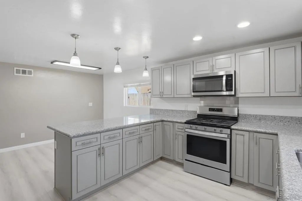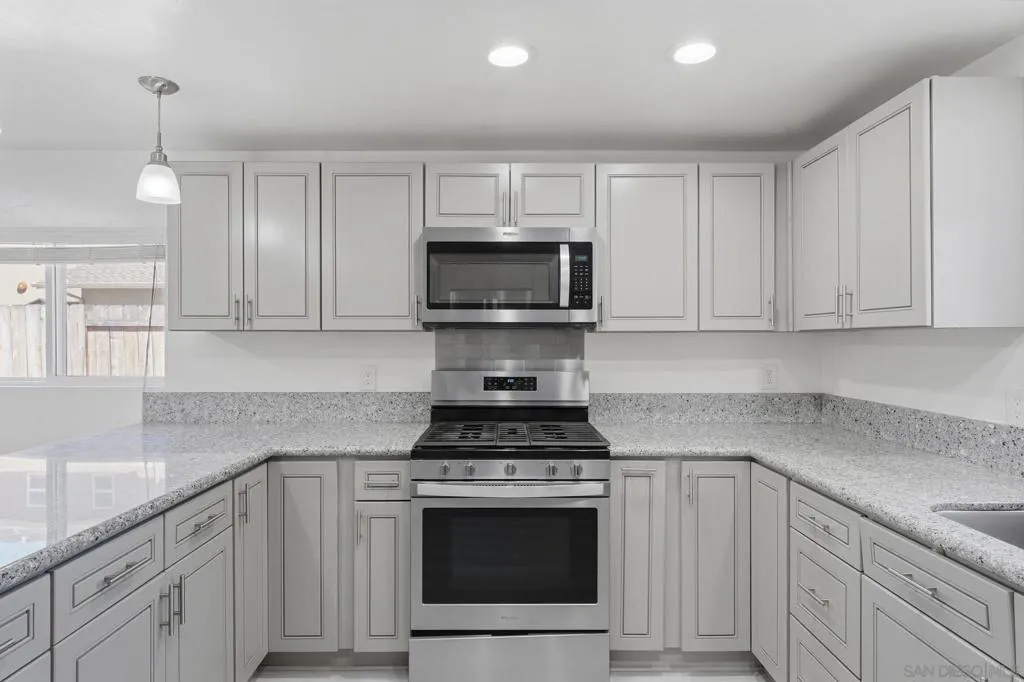 Welcome to this bright and spacious cul-de-sac home, completely remodeled in 2020 and ready for its next owner. The thoughtful floor plan offers comfortable living with a beautifully updated kitchen featuring granite countertops, stainless steel appliances, modern cabinetry, and durable vinyl plank flooring throughout. The primary suite includes an updated bathroom with a tiled shower, double vanity, and extra closet space. Multiple bedrooms upstairs, while two additional bedrooms and a full bath downstairs provide flexibility for guests, family, or a home office. A large laundry/mudroom with extra storage adds everyday convenience. Step outside to enjoy the fully fenced backyard and beautiful covered patio, perfect for relaxing or entertaining year-round. The home also features an updated sewer lateral for added peace of mind. Priced to sell, this is a fantastic opportunity you won’t want to miss. Conveniently located with easy access to Highway 67, this home is just minutes from Lindo Lake and Lake Jennings, offering great options for outdoor recreation. Everyday essentials are close by with shopping at Target, Costco, Walmart, Trader Joe’s, and Sprouts, along with a variety of nearby restaurants and coffee shops. With schools just around the corner, this location makes commuting and running errands simple and convenient.