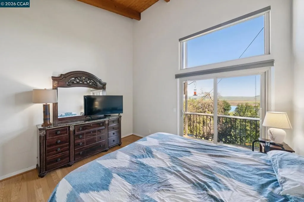 Perched in one of Novato’s most desirable neighborhoods, this exceptional home offers sweeping views of the Petaluma River and the rolling Sonoma hills. Blending nature with modern living, the residence features open beam/soaring ceilings and a striking fireplace that serves as the focal point of the main living area. The thoughtfully designed floor plan offers an ideal open-concept layout with subtle separation between living spaces, creating both connection and comfort. Recessed lighting enhances the bright interior, while the eat-in kitchen and formal dining area provide excellent options for everyday living and entertaining. Generously sized bedrooms offer comfort and versatility, and a unique, separate private suite creates an ideal space for adult children, in-laws, or guests. The backyard provides a peaceful, country-like setting with terraced spaces perfect for relaxing and enjoying the surrounding natural beauty. Wraparound decking captures stunning views from multiple vantage points, creating a seamless indoor-outdoor lifestyle. Energy-efficient solar adds comfort and efficiency year-round. A rare opportunity to enjoy scenic living in a truly special setting.