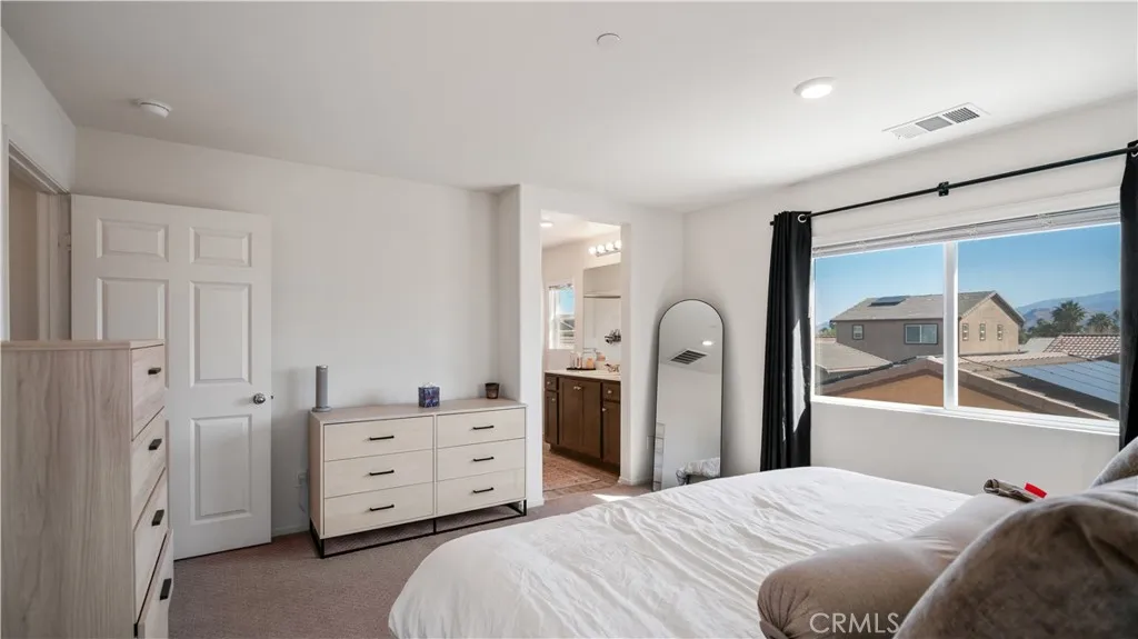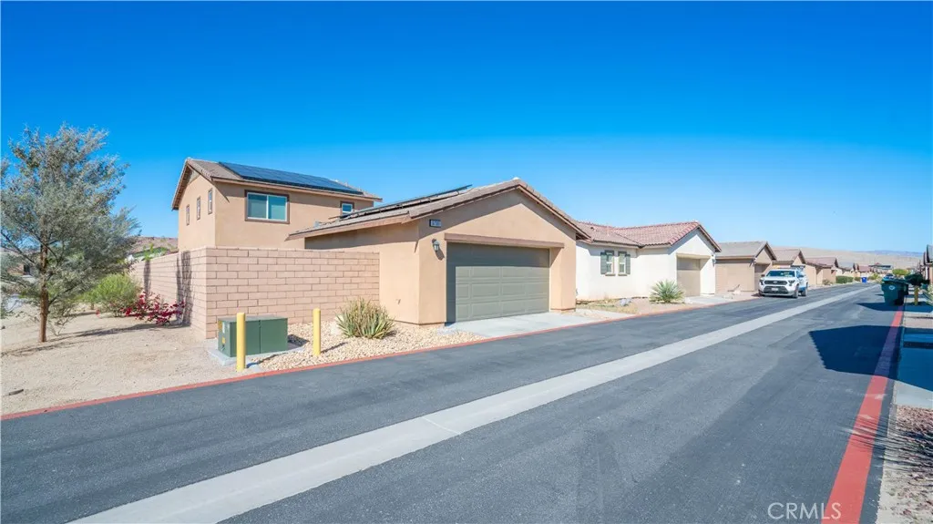Welcome to this beautifully upgraded home in the highly sought-after Verano community of Cathedral City with a gorgeous Mountain View. Built in 2021, this modern residence offers approximately 1,694 sq ft of thoughtfully designed living space with 4 bedrooms and 3 bathrooms with one bedroom and bathroom downstairs, master bedroom suite with 2 extra rooms upstairs with a good size laundry room with washer and dryer included, combining comfort, style, energy efficiency and equipped with smart appliances monitor/ alarm with several smart home features in one exceptional property The home features an open-concept layout filled with natural light, creating a seamless flow between the living, dining, and kitchen areas—perfect for both everyday living and entertaining. The spacious kitchen opens to the main living area and offers ample cabinetry and workspace, making it the heart of the home. This property stands out with its fully PAID solar panels & also an expanded solar system that is leased for $200/ month that has to be transferred to new buyers, paired with a Tesla solar battery for backup power generation in case of outages or storms and Tesla Universal EV charger, providing enhanced energy efficiency, reduced utility costs to minimal and reliable backup power—an incredible advantage for desert living. Garage also features epoxy flooring. The private outdoor space offers room to relax and enjoy the beautiful Coachella Valley climate, with professionally landscaped front and backyard areas including pet-friendly turf that enhance both curb appeal and livability. Residents of Verano enjoy access to an impressive array of resort-style amenities, including a clubhouse, fitness center, lap pool, multiple parks and grass fields, playground, basketball court, and bocce courts, creating a vibrant and active community lifestyle. Ideally located just minutes from Palm Springs, shopping, dining, and major commuter routes, this home offers the perfect combination of modern convenience, energy-efficient living, and outstanding community amenities. A rare opportunity to own a move-in-ready home in one of Cathedral City’s most desirable master-planned communities.