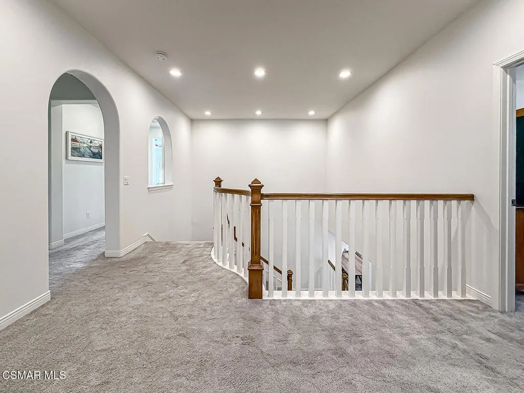 Experience refined living in this stunning Dos Vientos Ranch Concerto home, where grand architecture, private outdoor spaces, and breathtaking sunset views create the perfect blend of luxury and comfort. Crafted by Trimark Pacific, this exceptional residence showcases elevated architecture, soaring ceilings, expansive archways, and impeccable craftsmanship throughout.Guests are welcomed by a private gated courtyard, creating a warm and elegant arrival to this impressive 4,124 sq ft residence--the largest floor plan in the collection. Thoughtfully designed, the home offers 5 bedrooms, 4.5 bathrooms, a spacious loft, and an additional enclosed den/bonus room just off the entry, ideal for a home office, study area, music room, or quiet reading retreat. The main level also features a private en-suite bedroom with full bath plus a powder room, ideal for guests or multi-generational living.At the heart of the home, the expansive family room underwent a 2018 renovation, centering the gas fireplace and enhancing the space with warm and neutral stacked stone, along with custom built-in cabinetry and shelving for both beauty and function. The family room flows effortlessly into a beautifully appointed chef's kitchen designed for everyday living and entertaining. Enjoy lovely poolside views, newer appliances including a Sub-Zero refrigerator and Wolf double-oven range with microwave, all replaced in 2021, spacious pantry, plenty of counter space, large eating area with room for large table, along with freshly painted cabinetry and updated pendant lighting. Just off the kitchen, a generous dining room offers the perfect setting for gatherings and features an updated chandelier.French doors off the downstairs hall open to a spacious side patio ready for your vision. The low-maintenance rear yard sits just off the family room and kitchen and features a beautiful pool, spa, fire pit, and pergola for shade. This inviting backyard retreat offers a serene setting to unwind while enjoying the tranquil sounds of the pool's water features.Upstairs, the primary suite captures breathtaking sunset and mountain views and includes a cozy fireplace for relaxing at the end of the day. The primary bath offers a Jacuzzi tub, oversized shower, dual vanities, dual walk-in closets, and abundant cabinetry--all along side the stunning views. Down the hall are two additional spacious bedrooms sharing a bath with dual sinks and tub/shower, plus a conveniently located laundry room nearby.At the center of the second floor is a large loft area, perfect for games, movies, homework, or entertaining. Completing the upstairs is the 5th bedroom with its own en-suite bath, rounding out this luxurious and highly functional floor plan.Additional highlights include a 3-car garage, newer downstairs flooring and upstairs carpet, updated tile flooring in all bathrooms, updated lighting fixtures and ceiling fans (except one), and neutral white blinds throughout. Exterior improvements include fire-resistant hardscape landscaping, a largely upgraded eco-friendly drip irrigation system, and recently power-washed stone surfaces.Practical upgrades include a generator outlet for backup power, attic fan and whole-house fan for improved airflow and energy efficiency, and an updated washer and dryer (2024). These thoughtful improvements help reduce cooling costs while enhancing year-round comfort.A rare opportunity to enjoy luxury, function, and spectacular views in one of Dos Vientos Ranch's most desirable homes!