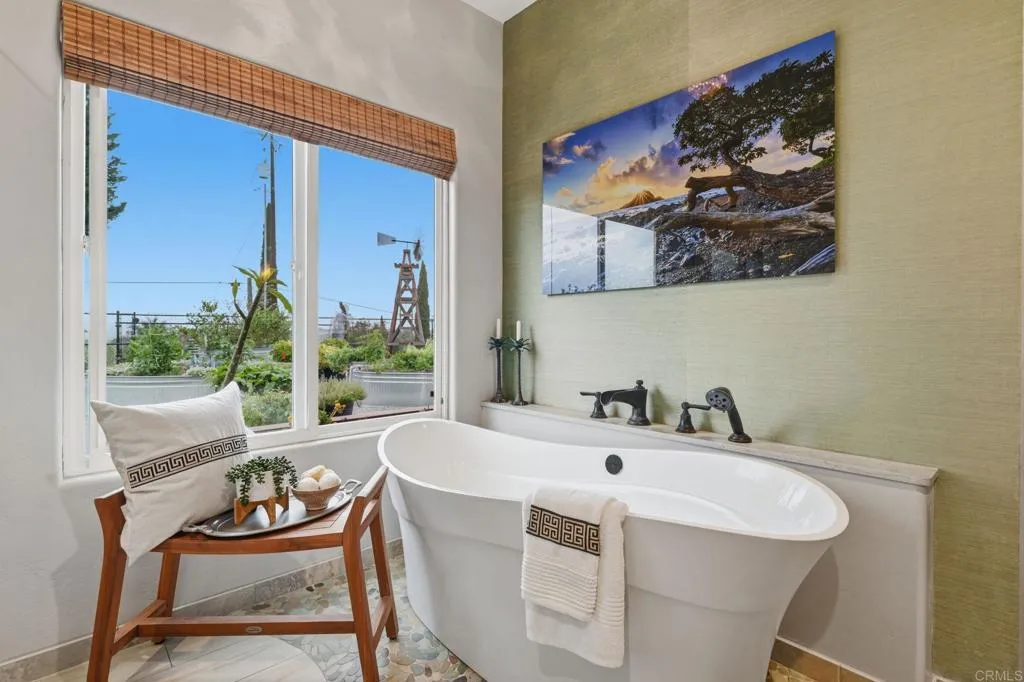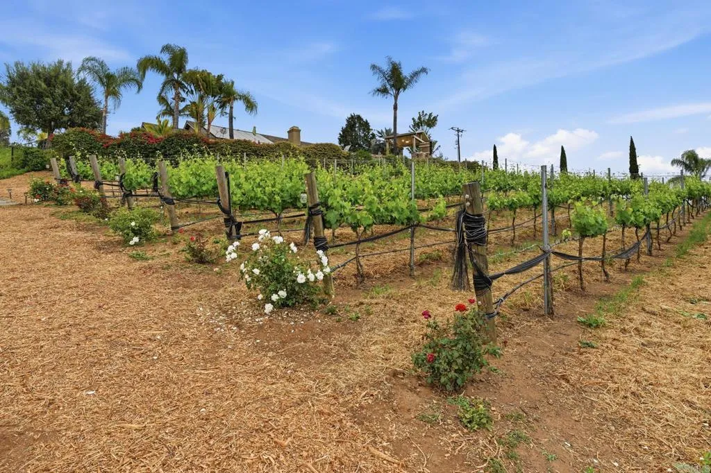 Rarely do we come across a property with such a variety of uses and plentiful amenities. You must see this one level gated home in a prime Fallbrook location to experience the amenities, design and layout for yourself! Panoramic views across the hills, groves and treetops to the west all set to display the most colorful and dramatic sunsets. The fully fenced property has a tropical zone, a cactus succulent zone, numerous fruit trees, raised vegetable gardens and approximately 800 vines which currently produce private label wines. The backyard retreat area includes a pebble tek pool and raised spa, outdoor fireplace and pizza oven as well as ample space for lounging around the pool while enjoying the outdoors and soothing ocean breezes. Inside the fully remodeled and upgraded kitchen features top of the line commercial grade appliances. The thoughtful design and layout features great separation for the primary suite and office to provide privacy for both you and your guests or other family members in the other bedroom wing. Added benefits include a large array of paid solar, convenience of being close to commuter routes as well as parks, schools, churches and downtown shopping. Truly something to please everyone! Schedule your private tour today!