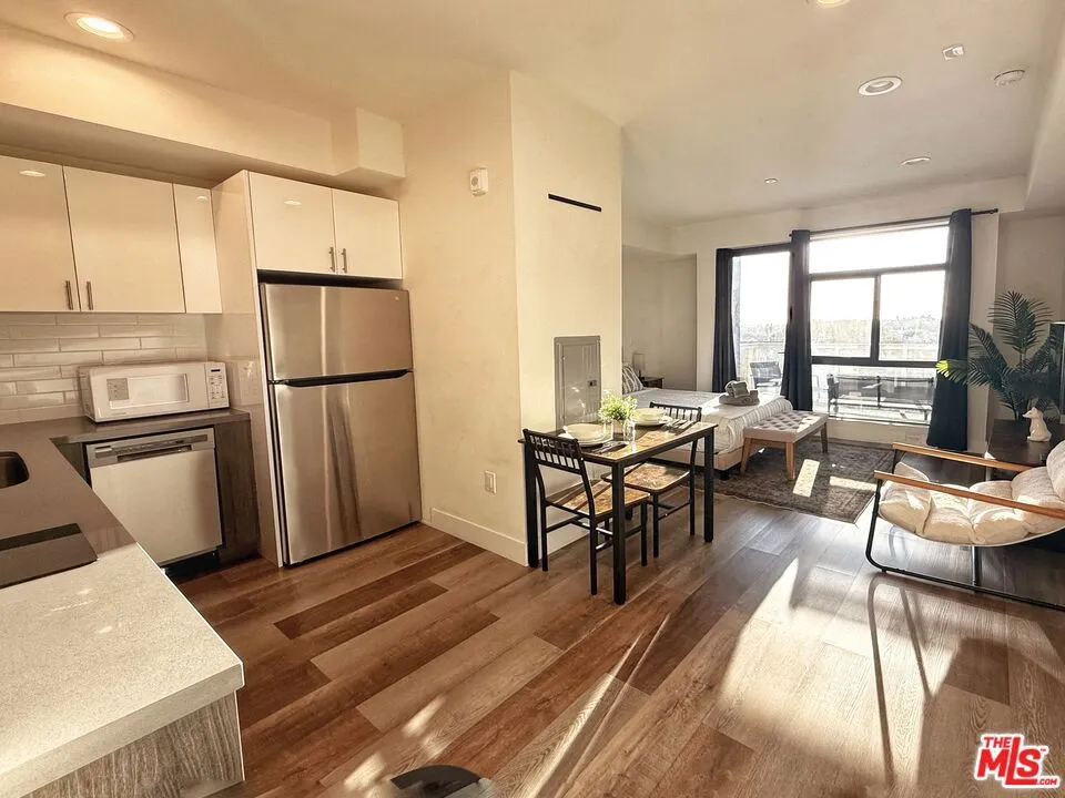Experience modern luxury living in this newer apartment community built in 2022, ideally located in the heart of vibrant Koreatown. This contemporary six-story residence showcases striking architectural design, secure subterranean parking, and thoughtfully curated spaces that elevate urban living.The property offers studio and one-bedroom residences, available in both furnished and unfurnished options, designed to accommodate a variety of lifestyle needs.Residences feature bright open-concept layouts with elegant wood flooring and modern kitchens equipped with stainless steel appliances, custom wood cabinetry, and stylish tile backsplashes. Each unit is appointed with in-unit washer and dryer, central heating and air conditioning, secure keypad door locks, and private balconies with scenic city views. Select residences enjoy views of the Downtown Los Angeles skyline or toward the picturesque coastal city of Santa Monica.Residents enjoy an array of upscale amenities including a stylish second-floor communal lounge with a kitchen and entertainment area that opens to an outdoor balcony through large folding doors. A rooftop deck provides a relaxing gathering space with sweeping views of Downtown Los Angeles and the iconic Hollywood Sign, while a fully equipped fitness center is available for residents' convenience. For added comfort and peace of mind, the property is monitored by 24-hour security camera surveillance.Ideally situated in the heart of Koreatown, the community is surrounded by an exceptional variety of restaurants, cafs, grocery markets