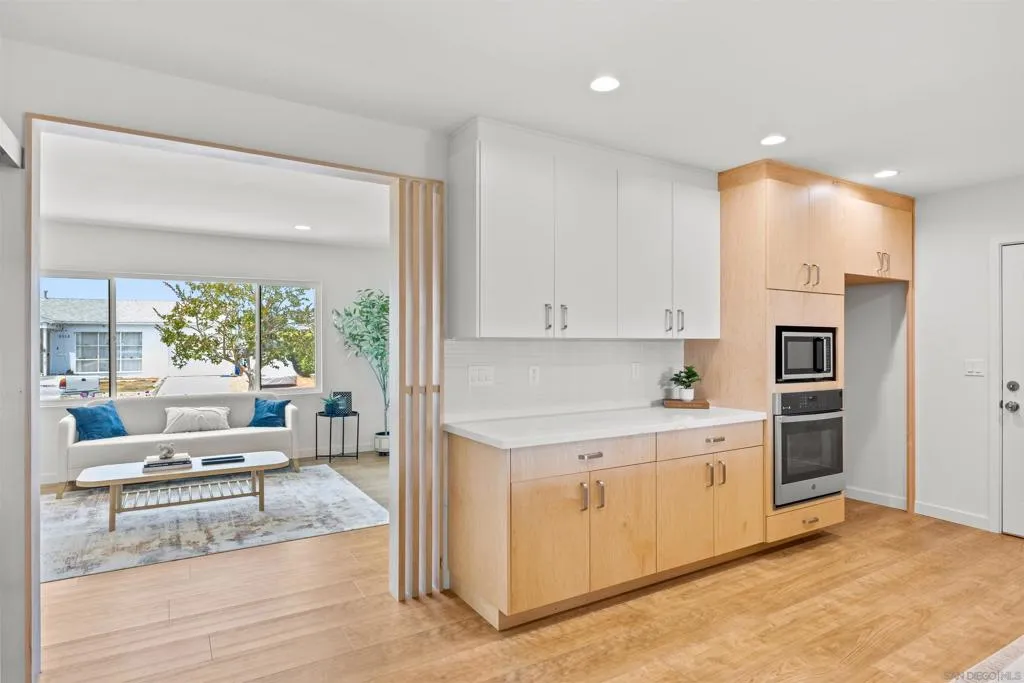 Fully renovated Bay Park home offering breathtaking panoramic views of Downtown San Diego, the Pacific Ocean, Mission Bay, and SeaWorld. Located on a quiet cul-de-sac, this beautifully updated residence features 4 bedrooms, 2 bathrooms, and approximately 2,323 sq ft of living space. The interior has been completely renovated with modern finishes, creating a bright and open layout ideal for both everyday living and entertaining. Large windows and open living spaces capture the stunning coastal and city views, while the spacious living and family rooms provide comfortable areas for gathering. Situated on a generous lot with canyon topography, the property offers multiple outdoor spaces including a deck and patio to enjoy San Diego’s iconic sunsets and city lights. This is a rare opportunity to own a view home in the highly desirable Bay Park neighborhood. Conveniently located just minutes from Mission Bay, beaches, parks, restaurants, and major freeways, this home perfectly blends modern upgrades with one of San Diego’s most sought-after coastal communities.