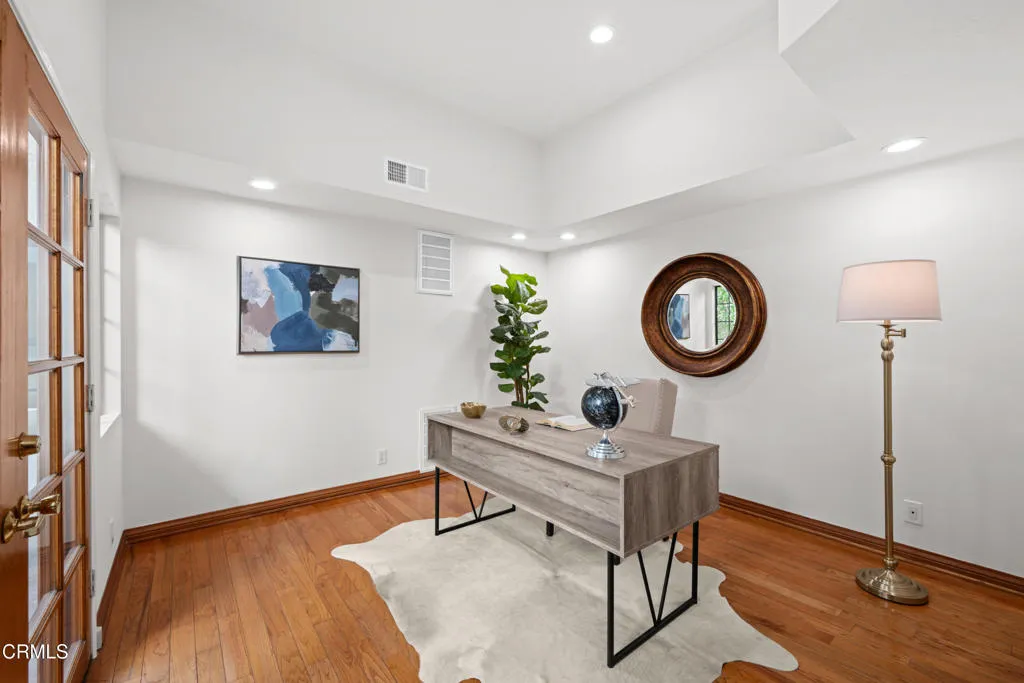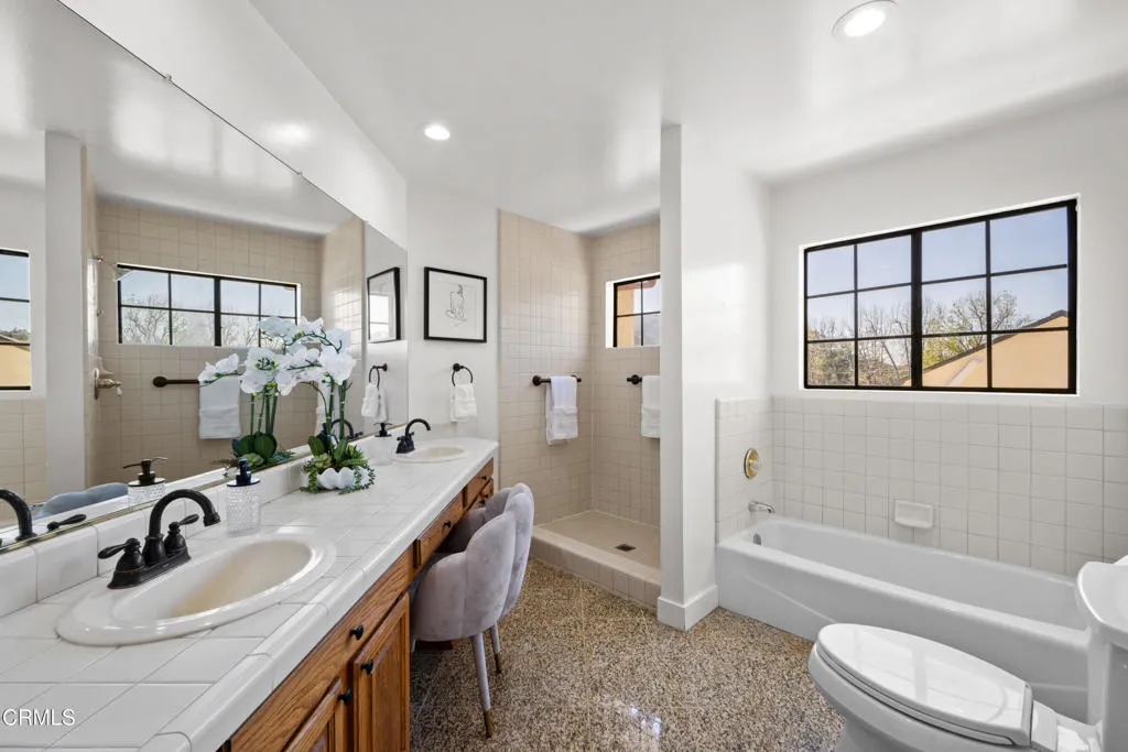 A Grand & Impressive 3,726 sf 4-Bedroom Home + 2024 1-Bedroom ADU on almost .5 Acre Lot in the Glendale Unified School District w/ award-winning schools-Crescenta Valley High, La Crescenta elementary and middle schools. This one-of-a-kind architect-built home influenced by CA Mission Revival welcomes you through an impressive foyer w/ cathedral ceiling, a formal living room w/ a gas fireplace, a large entertainment room w/ a wet bar, newly remodeled kitchen, breakfast room, office, and powder room. The 2nd floor has 4 spacious bedrooms w/ many windows highlighting views of the surrounding San Gabriel Mountains and Verdugo Hills, the main primary suite with stunning views and a balcony that overlooks the quiet neighborhood has 2 spacious bathrooms and 2 huge walk-in closets; there is a 2nd en-suite bedroom also with high ceilings, a full bathroom and views of the expansive backyard; there are also 2 other well-sized bedrooms having walk-in closets w/ built-ins. The house sits back from the street providing privacy among a well-loved neighborhood w/ flat streets.This home has a fantastic backyard w/ a peaceful setting great for hosting intimate garden parties or entertaining large crowds. A resort-like cabana w/ built-in BBQ and sink sits in the middle of a large patio adjacent to freshly planted flower bed. An elevated area of the yard overlooking the grounds and has another cabana w/ spectacular views especially for stargazing or soaking in magnificent sunsets. The attractive landscape showcases a variety of mature plants, a lawn area, paths, and fruit trees. A newer storage unit is included providing space for yard equipment and other home necessities. A 2024 1-bedroom and 1-bathroom ADU w/ living room and kitchen w/ tall ceilings and an abundance of light, a bedroom, a sharp bathroom w/ walk-in shower, a storage area/office, and a laundry closet with washer/dryer included makes this a unique opportunity. The entrance has a wheel-chair accessible ramp to the front door. There are several parking spaces making this property a perfect home for multi-generational living or having out-of-town guests. The ADU was completed w/ permits. Conveniently located close to Burbank Airport, Major Studios, USC Verdugo Hills Hospital, downtown Montrose, La Canada, Glendale, shops, restaurants, and several popular hiking trails. This home offers elegance, comfort, and space in one of La Crescenta's most sought-after neighborhoods. Come visit this amazing property!