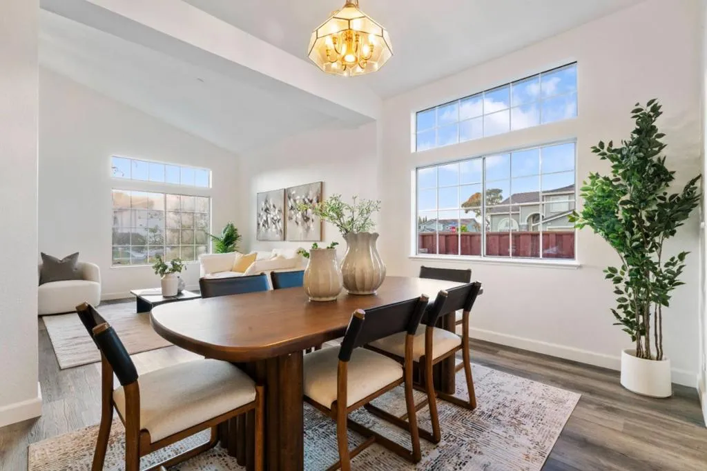 Beautiful single-story home on a generous corner lot a the highly sought after neighborhood in Union City, offering bright living spaces, thoughtful updates, and an inviting layout designed for comfortable everyday living and easy entertaining. Soaring ceilings and large windows fill the home with natural light, while spacious living & family rooms create warm gathering spaces for relaxing or hosting friends and family. Updated open kitchen features recessed lighting, SS appliances, an island that flows seamlessly into the family room. Primary suite offers vaulted ceilings, ample closet space, and an ensuite bath with dual vanities, soaking tub, and separate shower. 3 additional bedrooms provide flexibility for family, guests, or a home office.Central heating & A/C, dual-pane windows, and an attached 2-car garage with extra storage. Walking distance to scenic Alameda Creek Trail, Community Parks, Coyote Regional Park; Mins to Shopping Complex, Movie Theatre, FB HQ Google/Visa Shuttle Stop, Local bus lines, BART Station; EZ Access to 880, 84 (Dumbarton Bridge), 92 (San Mateo Bridge). Move-in ready and ideally located, a true must-see.
