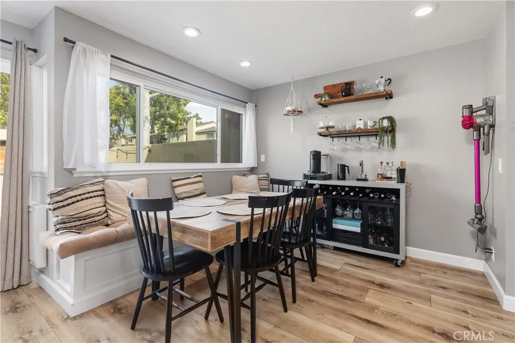 Welcome to this beautifully updated residence in the highly sought-after North Towne Park community, where modern design and everyday comfort come together in one inviting space. This 2-bedroom, 1.5-bath condo offers 1,146 square feet of thoughtfully curated living with stylish finishes and a light, airy ambiance throughout. Step inside to a bright and inviting living room featuring soaring vaulted ceilings, a cozy fireplace, and updated vinyl flooring that flows seamlessly through the main living areas. Sliding glass doors from the living room lead to a private patio accented with string lights, creating an inviting outdoor space perfect for relaxing or entertaining. At the heart of the home, the upgraded kitchen showcases quartz countertops, stainless steel appliances, white shaker cabinetry, and a striking white and black herringbone backsplash that adds the perfect designer touch. Upstairs, both bedrooms are generously sized and filled with natural light, each featuring vaulted ceilings that enhance the home’s open feel. The primary bedroom offers a comfortable retreat, complete with an ensuite bathroom, a spacious closet with built-in organizers, and a private balcony—perfect for enjoying morning coffee or unwinding in the evening. Downstairs, a convenient powder room includes an updated vanity along with an in-unit washer and dryer. Additional highlights include a one-car attached garage plus an additional covered carport space for added convenience. Residents of North Towne Park enjoy access to community amenities including a pool, spa, clubhouse, and lush greenbelts. Ideally located within the award-winning Claremont School District and just minutes from the Claremont Colleges, the vibrant shops and dining of Claremont Village, and convenient access to the 210 freeway. This home offers the perfect blend of lifestyle and location.