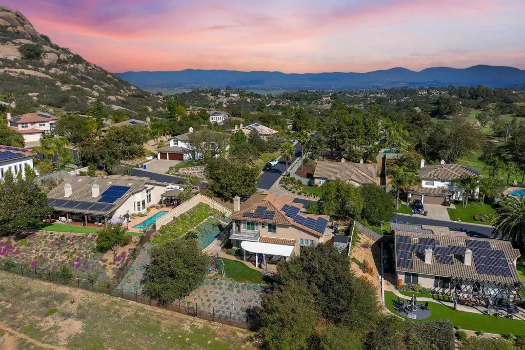 Views, upgrades, and energy savings! Enjoy spectacular sunsets and even ocean views on clear days from this beautifully upgraded Mt. Woodson home. Nearly $100K in landscaping creates a private outdoor retreat with turf, fruit trees, and an Alumawood pergola—perfect for relaxing or entertaining. Energy efficiency shines with 33 owned solar panels (with warranty) and two Tesla Powerwall batteries, currently generating an annual credit check from SDG&E. Inside features fully remodeled bathrooms, hardwood flooring upstairs and tile wood downstairs, ceiling fans in every room, and custom window shades throughout. Located in the peaceful Mt. Woodson community with convenient access to both Ramona and Poway. A rare blend of views, upgrades, and smart energy living.