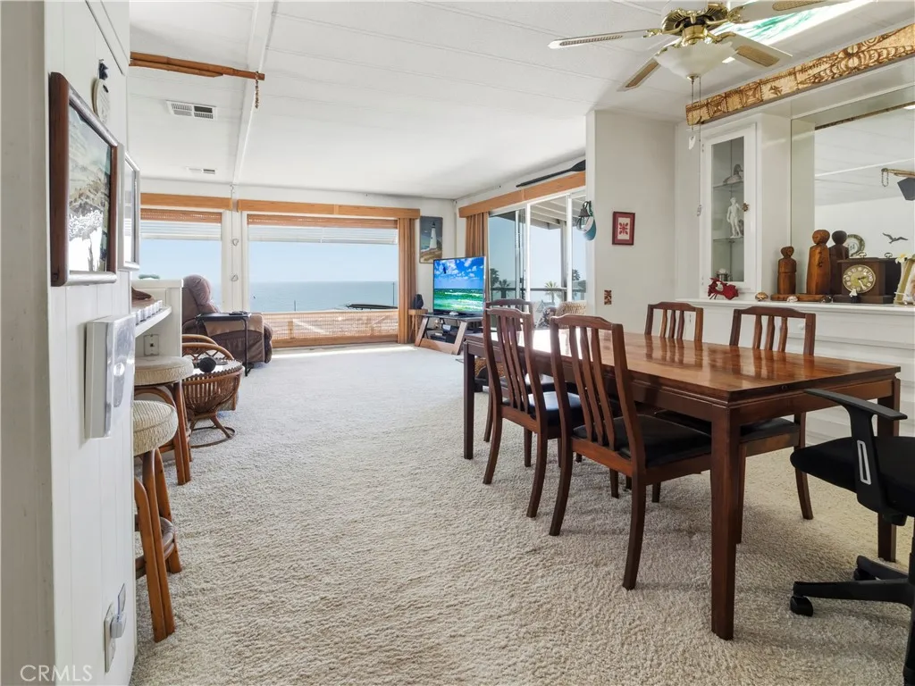 A dream come true home in Capo Beach Cottages with one of the best ocean views in the neighborhood. This home has 2 bedrooms and 2 bathrooms and an open floor plan that encompasses the living and dining rooms and kitchen. A walk-in closet is part of the primary bedroom. There is a large porch and spacious carport that allow perfect roominess for both comfortable living and for entertaining. Capo Beach Cottages is an active 55+ community close to downtown, shopping and the pier. There is a clubhouse to enjoy billiards, ping pong, a fully stocked commercial kitchen, a shared library, big screen tv and planned events. Two pickleball courts are on property and the beach directly across the street is private for residents and their guests. Call today to tour this beautiful home and everything that Capo Beach Cottages has to offer.