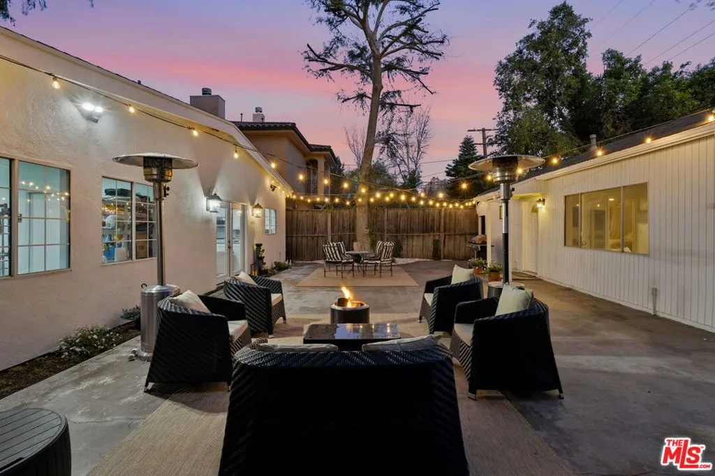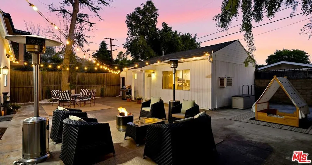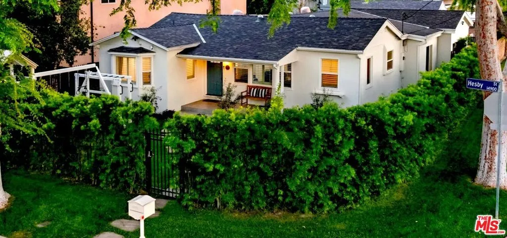This bright and spacious home with ADU on a corner lot awaits! Enter the fully enclosed, grassy front yard beneath a canopy of mature trees. The charming front patio of this updated California Ranch home is ready for gathering during sunny days and relaxing on cool nights. Once inside, you will be welcomed by loads of natural light, gleaming wood floors, and charming window shutters that nod to the homes architectural style. Pass through the elegant formal living room that ushers you into a large open plan kitchen, dining, and family room. The main home has four bedrooms, one currently serves as an exercise room, with a fully updated primary and en-suite spa-like bathroom. Enjoy modern updates such as Viking appliances and a conveniently tucked away laundry area. Double doors from the kitchen take you to the expansive backyard ready for entertaining or quiet evenings enjoying gorgeous sunsets. At the end of this lot you will find a guest house with the fifth bedroom, its own bathroom, and separate kitchen and living area. The attached two car garage has loads of storage space and enters directly into the home. When you do choose to leave this oasis, take your pick of the best shopping, dining, and recreation options nearby. Located in the coveted Kester Elementary school district.