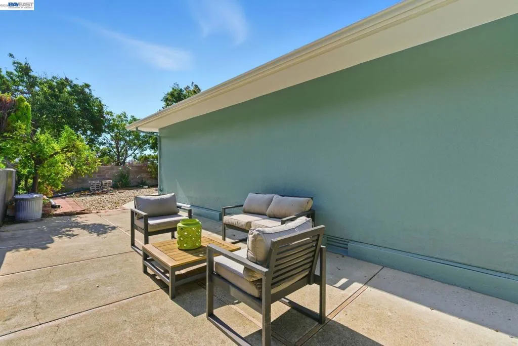 Single level Bay-O-Vista classic with fresh style and easy indoor outdoor flow. This light-filled 3 bedroom, 2.5 bath home welcomes you with an oversized picture window and a stone fireplace in the living room. The adjoining family room with brick fireplace opens to a sunny patio that makes entertaining simple. The newly updated kitchen balances, modern luxury with classic charm. Showcasing design forward color choices on the cabinetry, modern subway tile, quartz countertops, and a cozy breakfast nook. Recent updates include interior and exterior paint, updated lighting, updated kitchen, and bathroom, wide-plank floors that deliver a modern, move-in-ready feel. The hall bath features a new double vanity with matte black fixtures and new flooring. Important system work has been completed, including rear foundation and drainage upgrades for long-term peace of mind, plus a newer roof. The low-maintenance yard offers multiple seating areas, terraced plantings, and hillside outlooks. A two-car garage and a wide driveway provide easy parking. Minutes to Lake Chabot trails, local shops and dining. A bright, comfortable home in a coveted neighborhood with room to personalize over time.