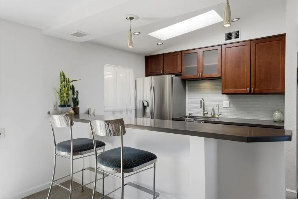 Welcome to ''Hummingbird Heaven,'' an exceptional retreat in South Palm Desert, originally designed by the founder of Silver Spur Ranch and among the very first homes built in this historic neighborhood.Beautifully updated and meticulously maintained, this 3-bedroom, 3-bathroom residence offers an open floor plan filled with natural light. Paid for Solar for low or No electric bill. Expansive windows seamlessly blend indoor and outdoor living, showcasing the breathtaking beauty of the professionally designed desert landscaping. Step into the great room featuring an inviting fireplace, a remodeled kitchen with custom cabinetry, and elegant quartz countertops. The thoughtfully designed outdoor spaces provide multiple areas for dining, entertaining, and relaxation, surrounded by artistic desert gardens created by the former Curator of Gardens at The Living Desert Zoo and Gardens.The south-facing backyard is a private oasis, complete with a sparkling pebble-tec pool and breathtaking Santa Rosa Mountain views. Ideally located at the base of the mountains and adjacent to Ironwood Country Club, the home is also just minutes from the world-class shopping and dining of El Paseo Shopping District. This cherished desert retreat offers privacy, beauty, and timeless charm in one of Palm Desert's most desirable neighborhoods.Schedule your private showing today to experience this hidden gem.