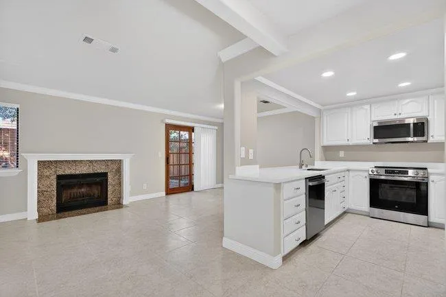 Beautiful 3 bed, 2 1/2 bath townhouse in Princevalle Private Community has been tastefully updated. All new interior paint, new kitchen appliances including stovetop, microwave, dishwasher & garbage disposal, plus new kitchen sink, faucet countertops & recessed lighting. Breakfast bar overlooks dining area and cozy family room with brick fireplace. Stairway & upstairs hallway have gorgeous hardwood flooring, hallway bathroom has new countertops, sink, faucet & refurbished bathtub with new fixtures. New window blinds, 9 new windows, & new carpet in all bedrooms. Hallway laundry closet has stackable washer/dryer plus counter. Peaceful back yard has paved patio and newer fencing, ready to enjoy! Garage has storage cabinets, A/C approx 1 year old, Furnace approx 2 years old. Community pool/spa. The list goes on and on!