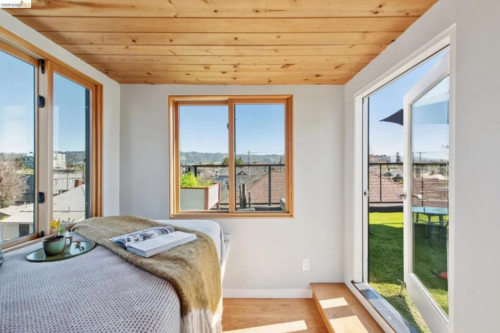 Extraordinary offering. This special property is ideal for multi-generational living, shared housing, or house hacking. Impressive single-family home at the front and a charming income-generating duplex at the back. A lovely courtyard with gardens and a small stage for live music or events separates the two buildings. The main house offers convenient living with an elevator connecting all three floors, newer windows and roof, and immaculate artistic interiors. On the lower level, there's a full bedroom and bath—perfect for a private suite or home office. The second floor includes two large bedrooms, an office, and a bathroom. On the top level, you'll find a bright living room, dining area, newly renovated chef’s kitchen with a Bertazzoni range, and another office. The rooftop deck provides panoramic views of the hills and Bay Bridge, privacy, and a plumbed gas grill for year-round enjoyment. The duplex has upper and lower units, each with two bedrooms, one bath, updated kitchens, new electrical systems, and windows. W/D in each unit, all appliances included. Both flats have functional layouts with charming details. Conveniently walk to nearby cafes, parks, and shops, and abundant off-street parking. Income from the duplex can help make this exceptional home your own!