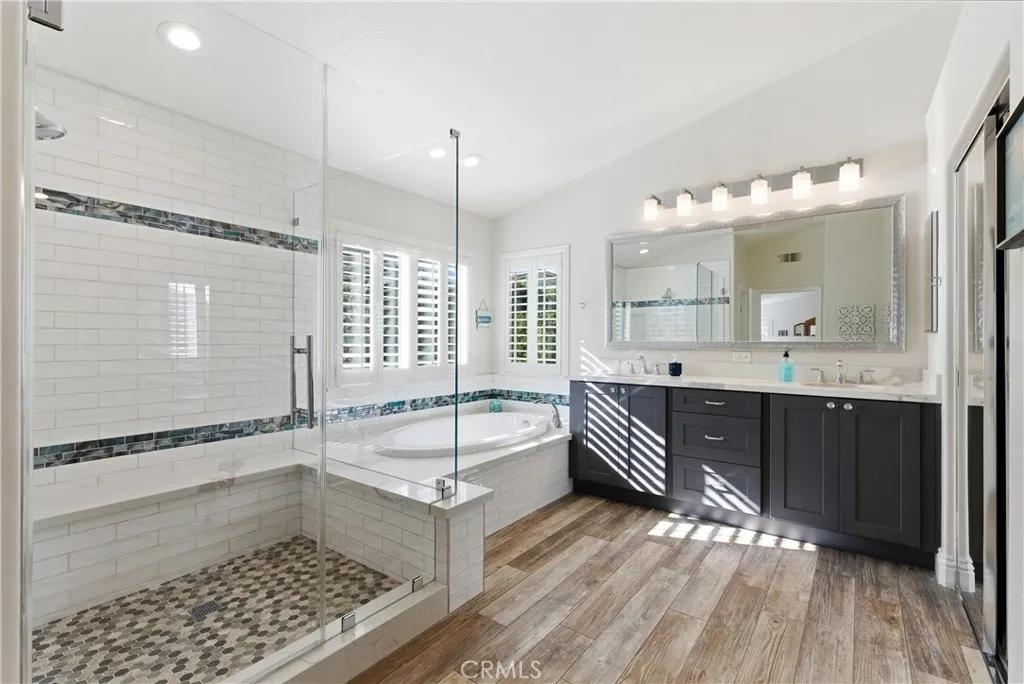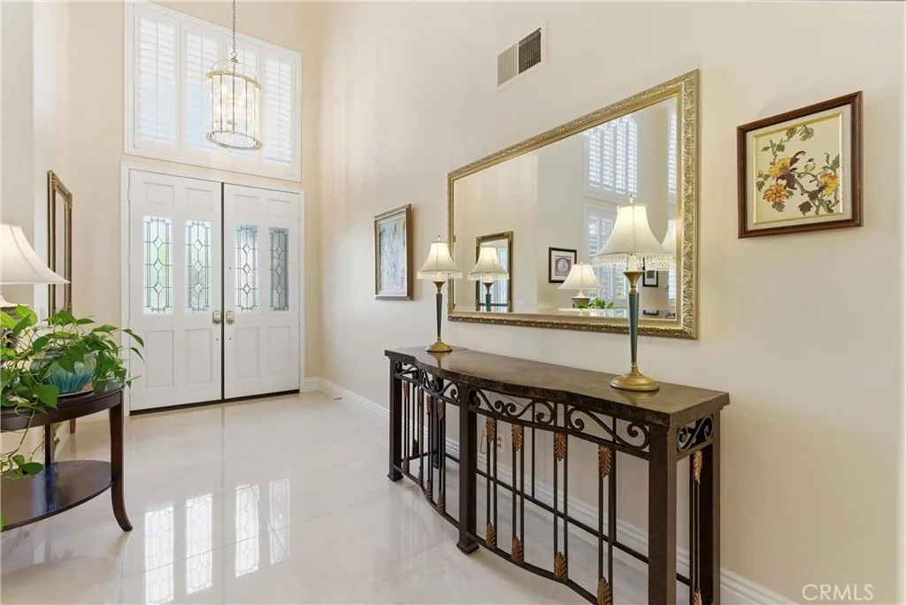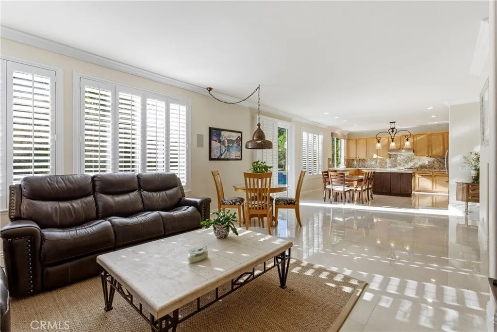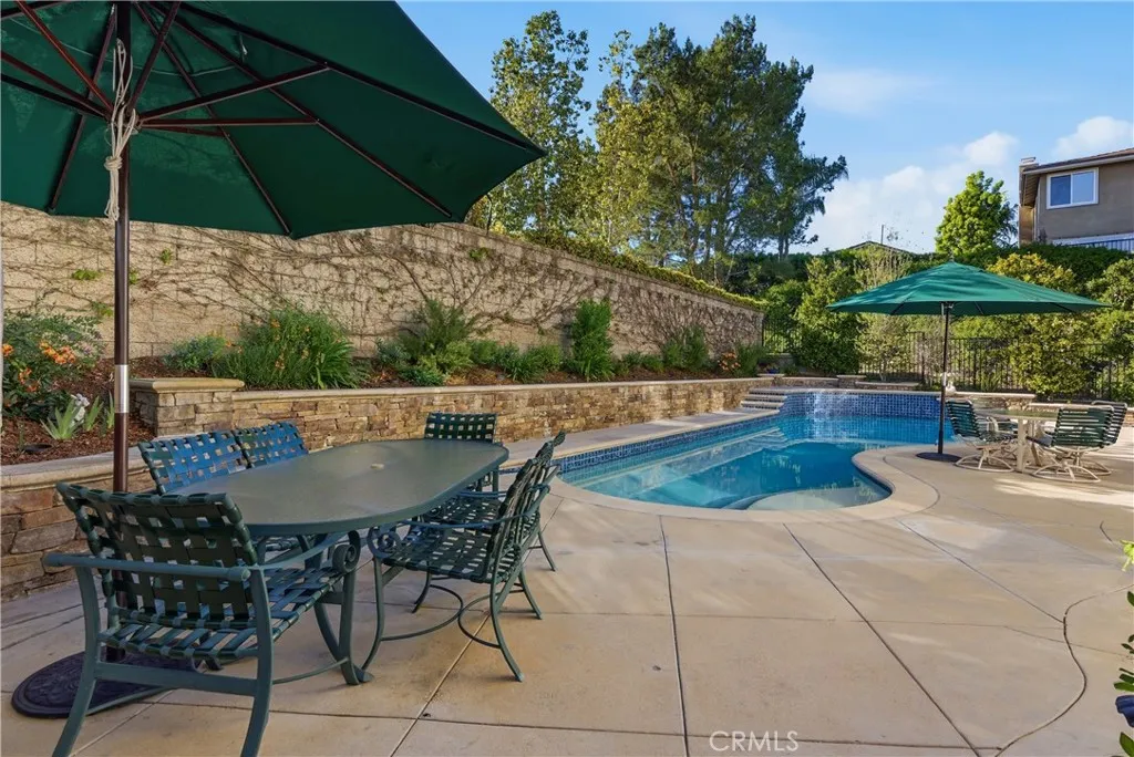 Nestled at the end of a quiet cul-de-sac in the prestigious gated community of Canyon Crest, this meticulously maintained residence showcases true pride of ownership and a rare level of privacy. Spanning 3,400 square feet on an oversized 8,050 square foot lot, a size seldom found within the neighborhood community, the home offers an expansive environment designed for both sophisticated living and grand-scale entertaining. The backyard serves as a private oasis, featuring a saltwater pool with solar heating and a spa, all framed by beautifully curated landscaping that extends to the front of the property. Inside, the open floor plan is bathed in an abundance of natural light and accented by plantation shutters throughout. The gourmet kitchen is a chef’s delight, featuring stainless steel appliances, sleek soft-close shaker-style cabinetry, and a beautiful blend of granite and quartz countertops. The main level is thoughtfully designed for accessibility and versatility, offering a downstairs bedroom and full bathroom with no steps, perfect for guests or multi-generational living. The second level is equally impressive, featuring brand-new carpet and a large bonus room that provides flexible space for a home office, bonus room, or play area. The spacious primary suite is a dedicated retreat, boasting two walk-in closets and a spa-inspired bathroom complete with a soaking tub, a large walk-in shower, and a dual vanity featuring slow-close cabinetry and quartz finishes. The home’s exceptional maintenance is further evidenced by significant high-value upgrades, including a full repipe with PEX piping and a circulating pump for instant hot water throughout. Modern comforts are integrated throughout the home, including a whole-house fan for energy-efficient cooling and ample storage solutions to keep the living spaces organized and serene. From the pristine interior finishes to the resort-style exterior, this home represents a premier opportunity to experience the very best of the Mission Viejo lifestyle. PLUS, this property is less than a mile from the beaches, boats, and summer concerts on Lake Mission Viejo, and it is zoned for the award-winning schools of Capistrano Unified.