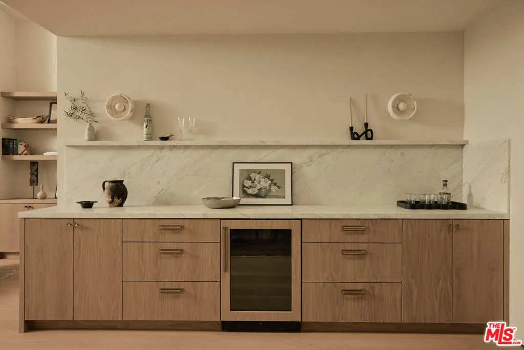 Tucked at the end of a quiet cul-de-sac atop Mar Vista Hill, this rare single-story residence, completely reimagined by AIH Development through a comprehensive renovation and thoughtful addition, offers a refined expression of contemporary California living on an expansive 8,500+ square foot flat lot. Inside, light-filled spaces unfold with quiet elegance, anchored by a generous great room and dining area with skylight above. A sophisticated palette of Calacatta marble, handcrafted tile, and curated finishes lends warmth, texture, and timeless appeal, while the floor plan balances openness with privacy. Four en-suite bedrooms including a primary suite with its own private garden, provide tranquil retreats, each designed with an emphasis on comfort, proportion, and understated luxury. Beyond the interiors, a series of private outdoor spaces extend the living experience. Hand-laid paver stone patios and pathways weave through the grounds, creating intimate moments for relaxation and gathering while embracing the home's setting. The detached two car garage is fully insulated with a heating and cooling system complete with new wall to wall rubber gym floor. A separate office with a private entrance offers a discreet and functional work space.Warm, refined, and thoughtfully composed, the home captures the relaxed sophistication that defines Westside living.