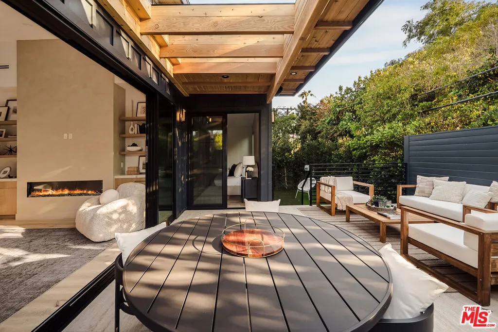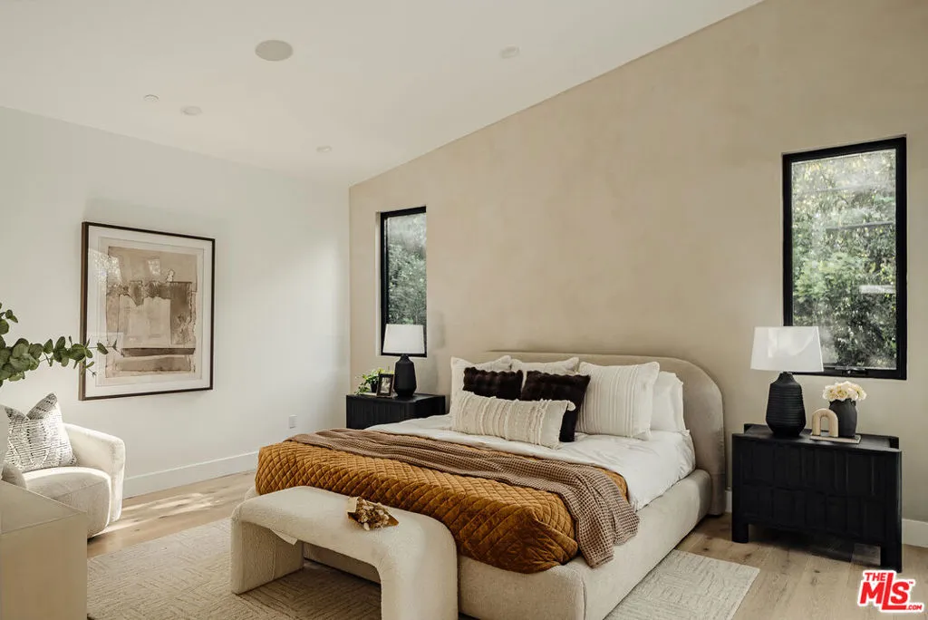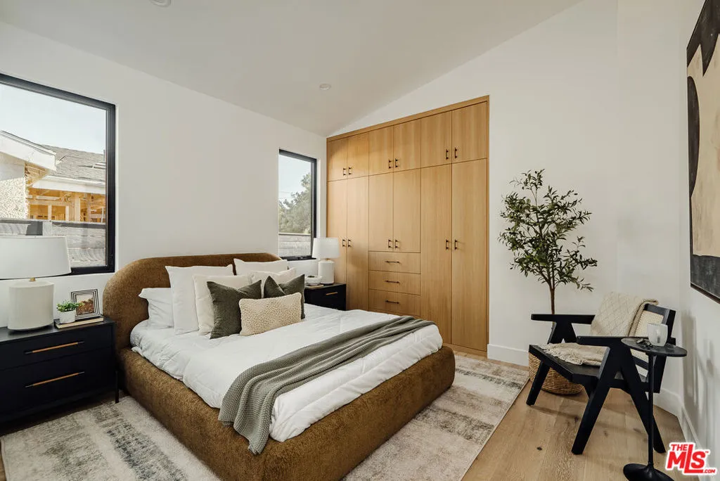 A Newly Completed Architectural Statement in Westside Village! Completed in 2026 with the finest of finishes, this stunning single-story architectural modern home offers an extraordinary level of craftsmanship, design, and comfort in one of the Westside's most desirable neighborhoods. This sophisticated residence features 4 bedrooms, 3 bathrooms plus an office, thoughtfully designed to blend dramatic contemporary architecture with warm, organic materials. From the moment you enter, the home reveals a breathtaking sense of scale and natural light. Soaring ceilings, sun drenched skylights, and walls of glass create an airy, gallery-like environment, while wide-plank wood floors and custom natural wood millwork add warmth and refinement throughout. The dramatic great room centers around a sleek modern fireplace and custom illuminated display shelving, creating a striking focal point for both everyday living and entertaining. The chef's kitchen is a true showpiece, designed for both beauty and performance. Custom cabinetry, dramatic stone countertops with full-height slab backsplash, professional-grade appliances, floating shelves with integrated lighting, and a sculptural oversized island with seating create a space that is as functional as it is visually stunning. The kitchen flows seamlessly into the dining and living areas, forming an expansive open-concept environment designed for modern living. The primary suite offers a private sanctuary, complete with a spacious custom walk-in closet and a spa-inspired bathroom featuring a freestanding soaking tub, oversized walk-in shower, dual vanities, and elegant stone finishes that evoke the ambiance of a luxury resort. Designed to embrace Southern California's indoor-outdoor lifestyle, sliding glass doors open to a beautifully designed rear entertaining retreat featuring an approximately 324-square-foot covered patio pavilion with exposed wood beams, a built-in BBQ kitchen, integrated outdoor lighting, and a built-in sound system, creating the perfect setting for evening gatherings and weekend entertaining. Additional highlights include designer lighting, custom built-ins, curated finishes throughout, and a sleek attached garage. Ideally located on a quiet tree-lined street in highly sought-after Westside Village, the home is moments from neighborhood parks, Clover Elementary, acclaimed restaurants, and the best of the Westside. This is a rare opportunity to own a newly built architectural residence where design, comfort, and lifestyle converge effortlessly.