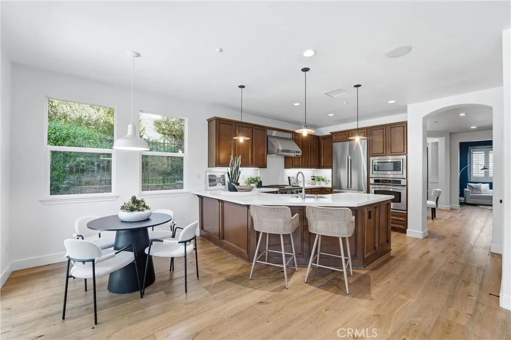 Behind the gates of Reserve South, sitting perfectly at the end of a quiet cul-de-sac, is this pristine residence. This property reveals a world apart where effortless coastal elegance meets tranquil living. With a premium-size lot nestled off the street, you will find an oversized driveway and a very sizable front yard. Once inside, you’ll be greeted by the inviting living room and formal dining space. The high-end custom hardwood flooring throughout the home is an eye-catching detail, sure to please any style. Continuing on, you will find the updated chef’s kitchen featuring all-new, gorgeous quartz counters, an eat-at counter, and top-of-the-line stainless steel appliances, all highlighted by warm wood cabinets and a generously sized walk-in pantry. Adjacent is an eating area and cozy family room with a welcoming fireplace. The idealistic floor plan features a downstairs bedroom and full bath, making it an exceptional option for multi-generational living. Upstairs, you’ll be pleased to find the same stunning hardwood flooring. There is a flexible loft space for media, teen room, or homeschool setting. Two spacious secondary bedrooms, one with an ensuite bath, upstairs laundry, and a secondary bath, are ready to meet all your needs. Completing the upstairs is the attractive primary suite with two walk-in closets, a primary bath w/ a shower, soaking tub, and his-&-hers vanities. In addition, you'll be thrilled with the separate primary retreat featuring a double-sided fireplace. (5th-bedroom option with the builder that could easily be converted into an additional bedroom) Ready for a vacation… step outside to your resort-like backyard oasis. The Alderete-built pool is nothing short of perfection, w/ a Baja shelf, expansive spa, and a “swim machine”. The outside entertaining and kitchen bar area boasts a stunning concrete counter w/ a built-in GE Monogram BBQ, refrigerator, and storage. Your guests won’t want to leave this relaxing setting. End the day by gathering around the fire pit, with seating to accommodate everyone. Another core feature is that this home has fully owned solar! A captivating gated community, the Reserve South offers an HOA pool, spa, picnic area, clubhouse, park, walking paths, and so much more. This spectacular residence puts you right where you need to be, close to the finest beaches, world-class surfing, coastal beach trails, shopping, entertainment, and all the things San Clemente, the Spanish Village By the Sea, has to offer.